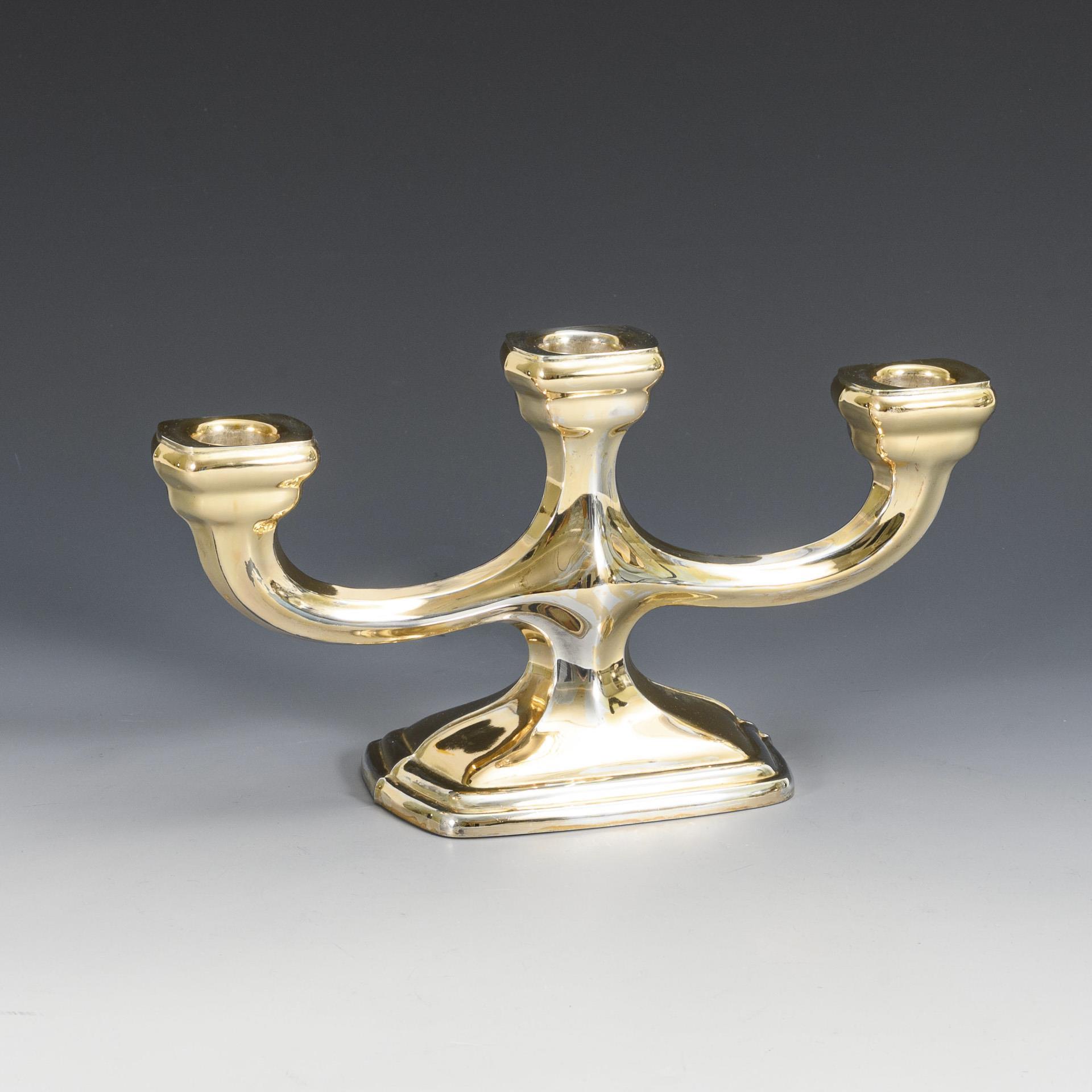 3-flammiger Leuchter auf beschwertem Rechteckfuß. Leichte Gebrauchsspuren.