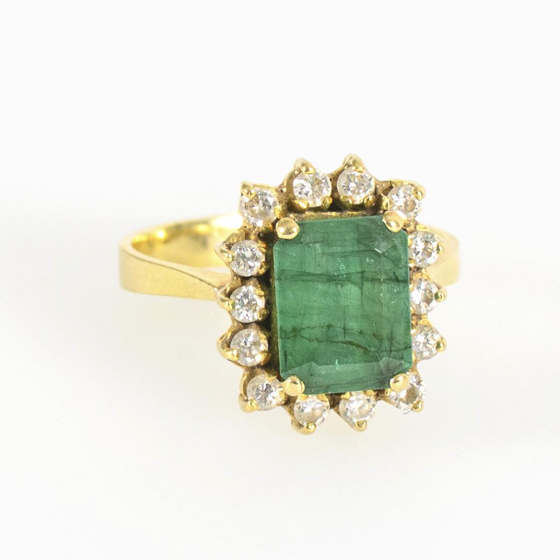 Sie befinden sich hier: Startseite Kategorien Schmuck Entourage-Ring mit grünem Farbstein, wohl Smaragd, und Brillanten