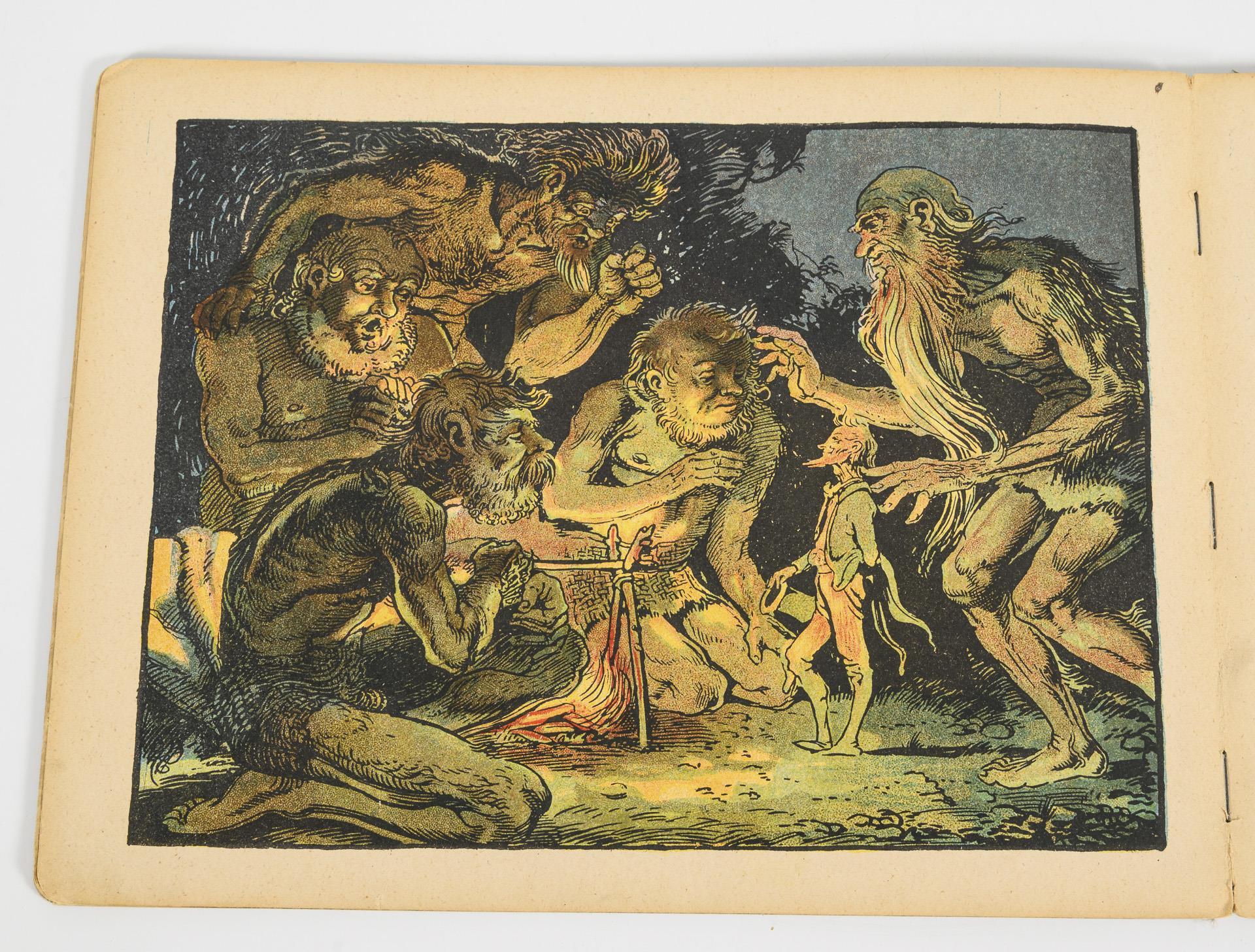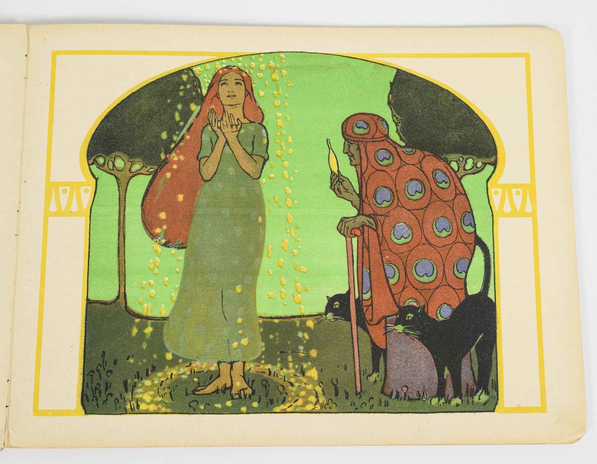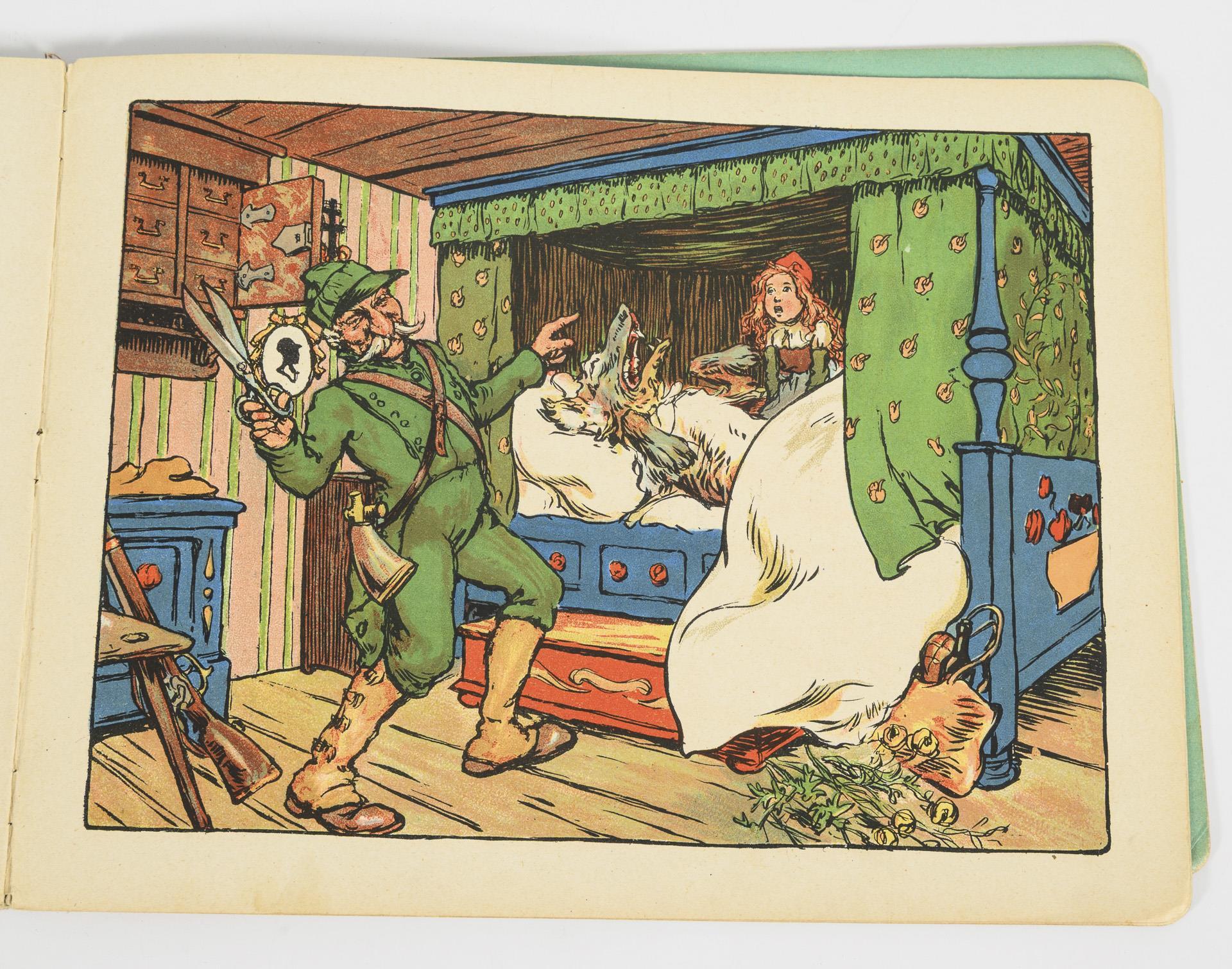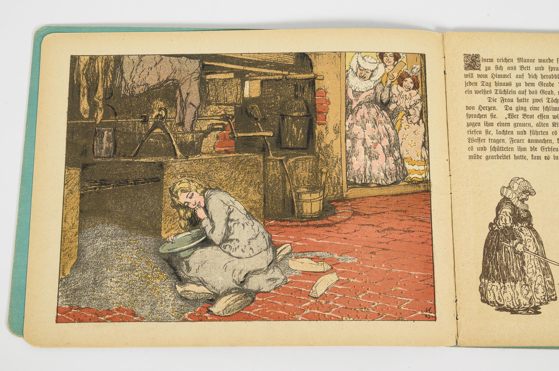 Nr. 1, Dornröschen, gezeichnet von Julius Diez / Nr. 2, Marienkind, von Heinrich Lefler und Josef Urban / Nr. 3, Aschenputtel, von Adolf Münzer / Nr. 4, Rotkäppchen, von Arpard Schmidhammer / Nr. 5, Hänsel und Gretel, von Richard Scholz / Nr. 6, Sneewittchen (sic), von Franz Jüttner / Nr. 7, Frau Holle, von Fritz Kunz / Nr. 8, Der Froschkönig, von Ernst Liebermann / Nr. 9, Hans im Glück, von Hans Schroedter / Nr. 10, Der Wolf und die sieben jungen Geißlein, von Eugen Wolf / Nr. 16, Das tapfere Schneiderlein, von Emil Ernst Heinsdorff. Alle im Halbleineneinband. Gebrauchsspuren, aber guter Zustand, bei zwei Büchern Block lose.