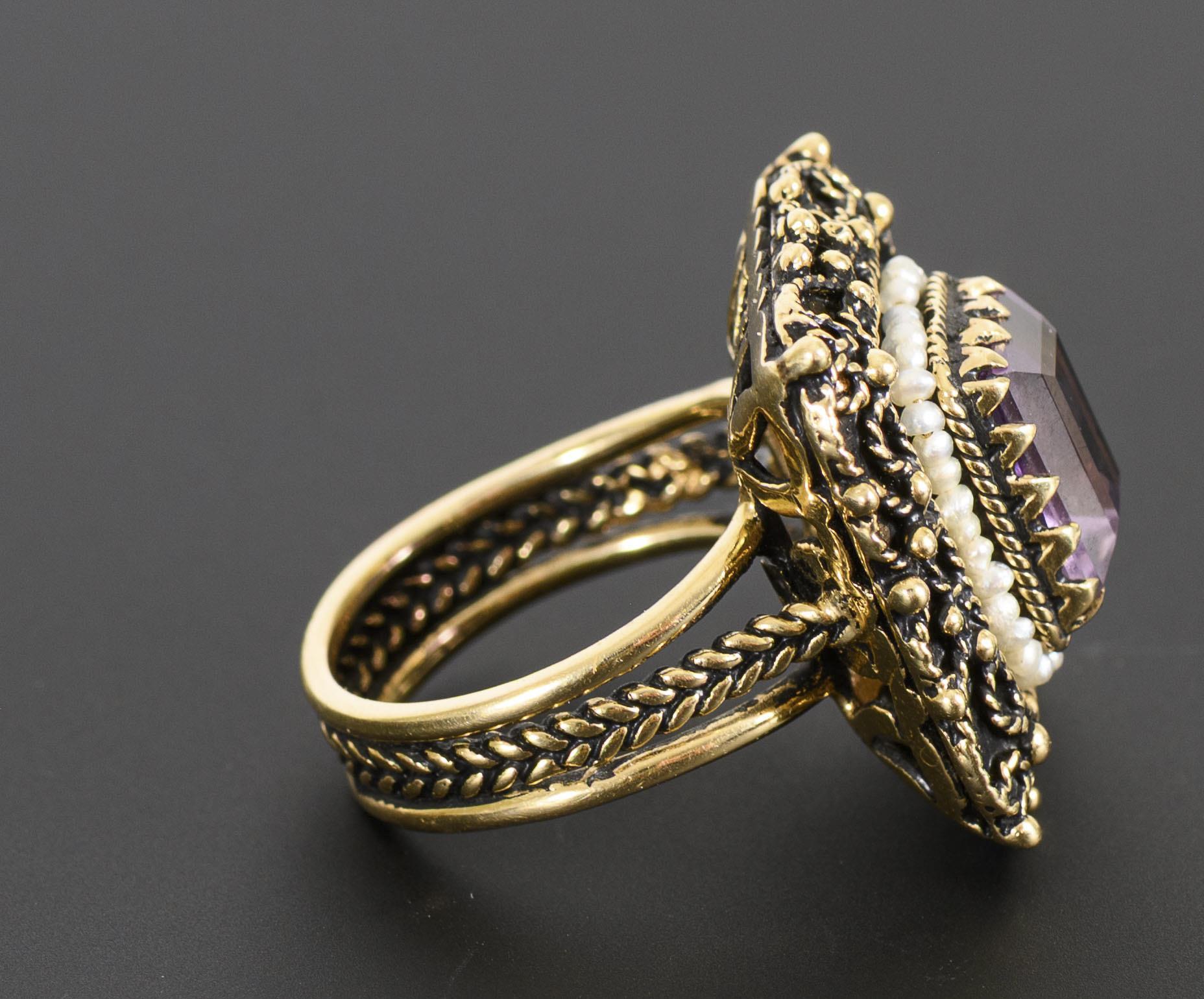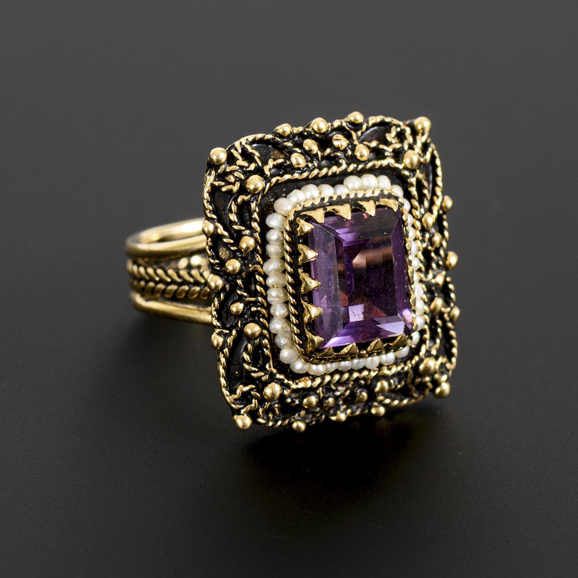 Vintage-Ring mit Amethyst und kleinen Saatperlen.