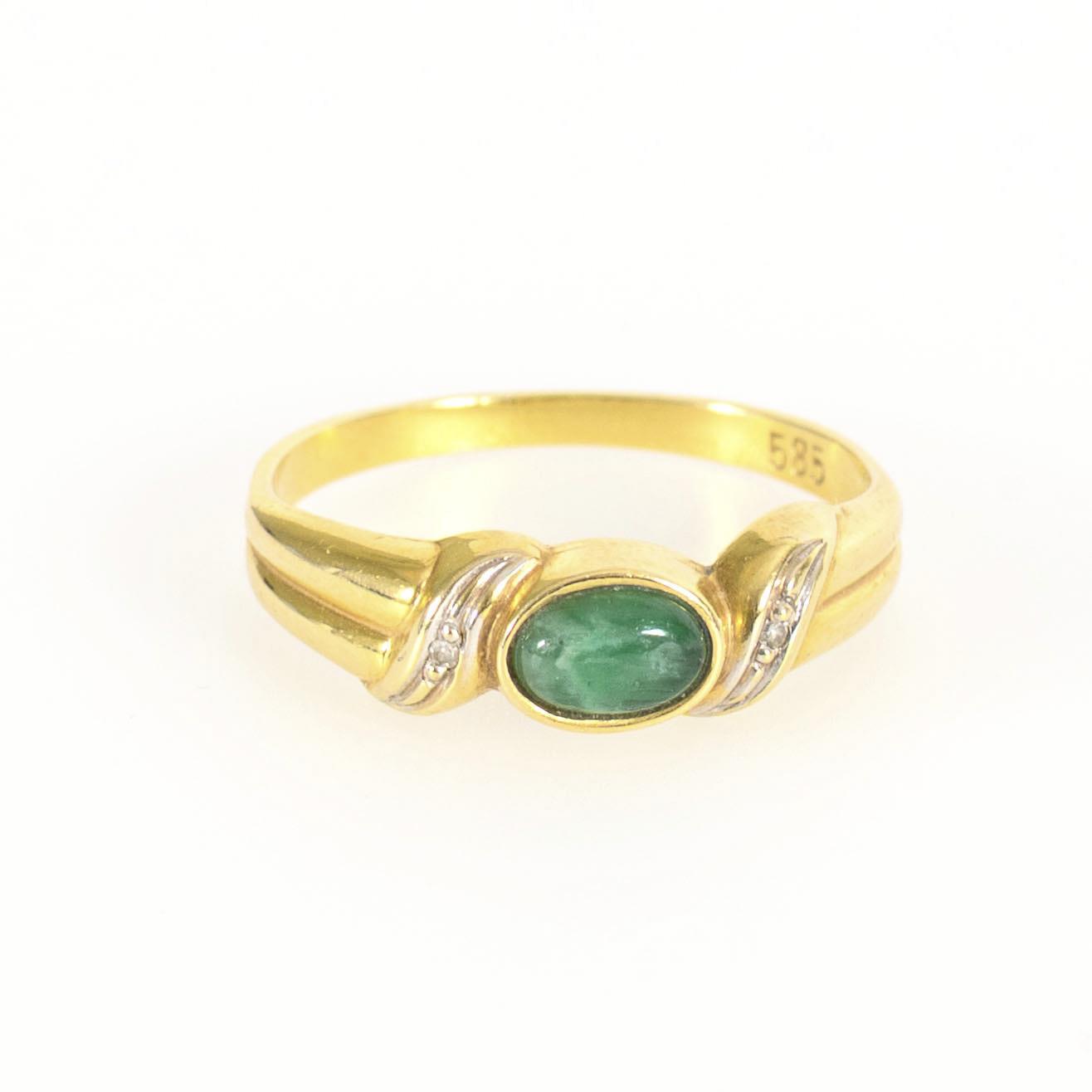 Ring mit grünem Cabochon, wohl Jadeit, und Diamantsplittern.