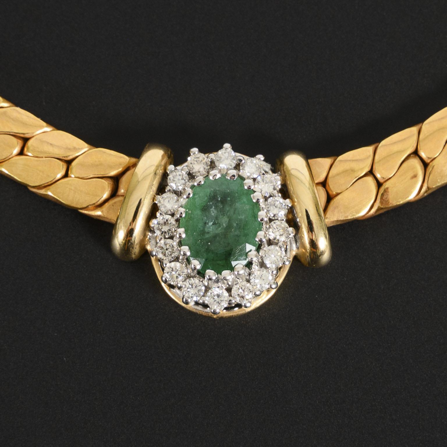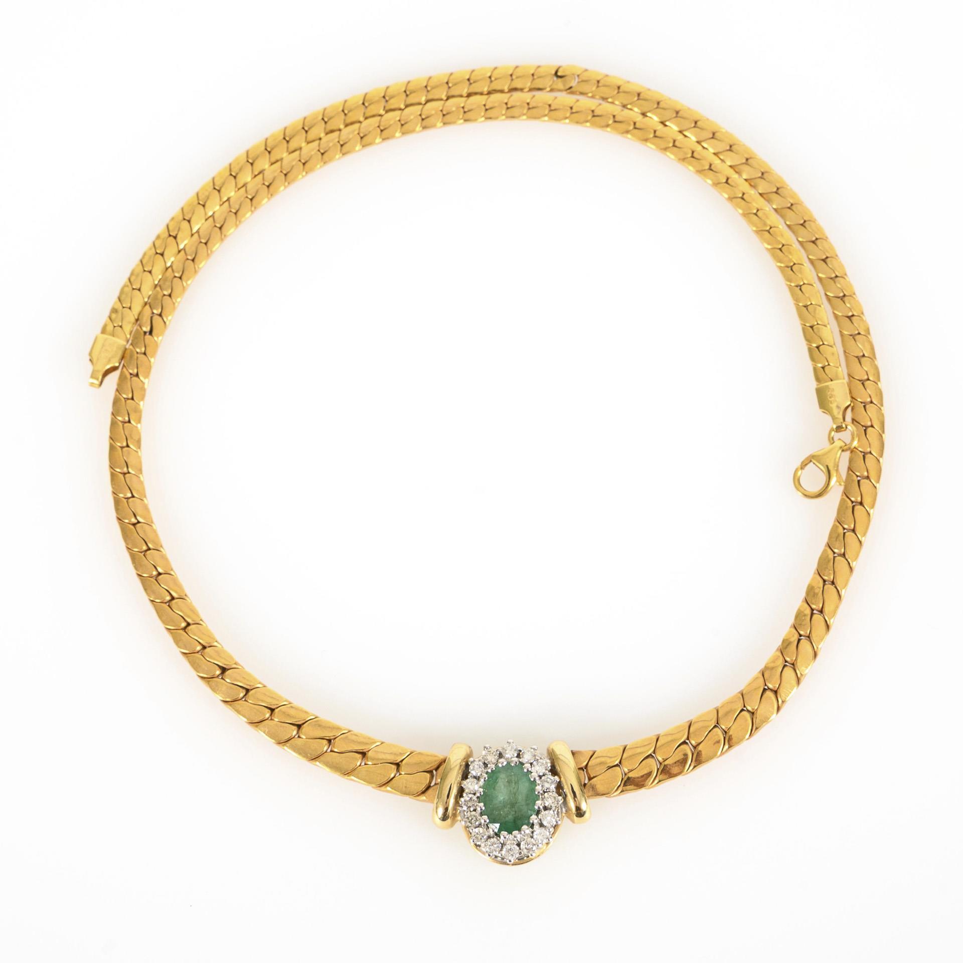 Sie befinden sich hier: Startseite Kategorien Schmuck Collier mit grünem Farbstein, wohl Smaragd, und kleinen Brillanten