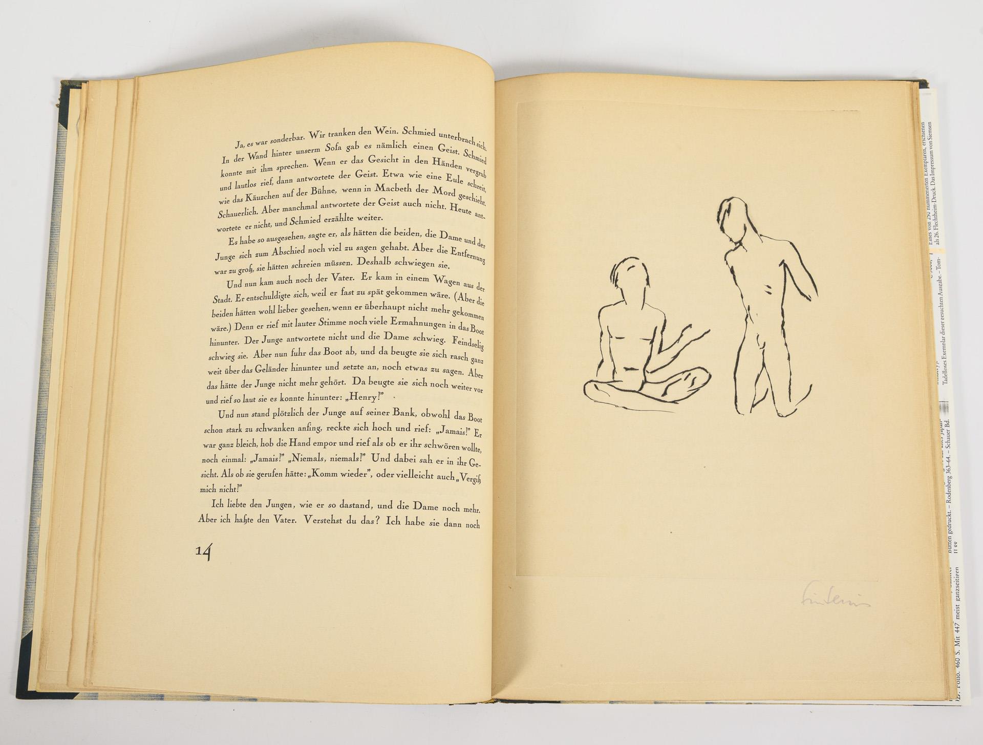 Nummeriertes Exemplar 168/250, 26. Flechtheim-Druck. 33 Textseiten und 10 Lithografien mit Bleistiftsignatur der Künstlerin, ebenso das Impressum. Im Halbledereinband. Einband stärker berieben, Block ganz schwach lichtrandig.