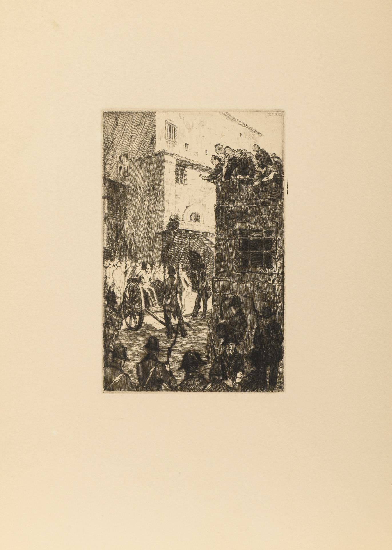8 Blätter aus einer illustrativen Mappe (12 Blatt) zur Novelle "Vanina Vanini" (1829) des französischen Literaten Marie-Henri Beyle, genannt "Stendhal". Teilweise im Druck signiert.