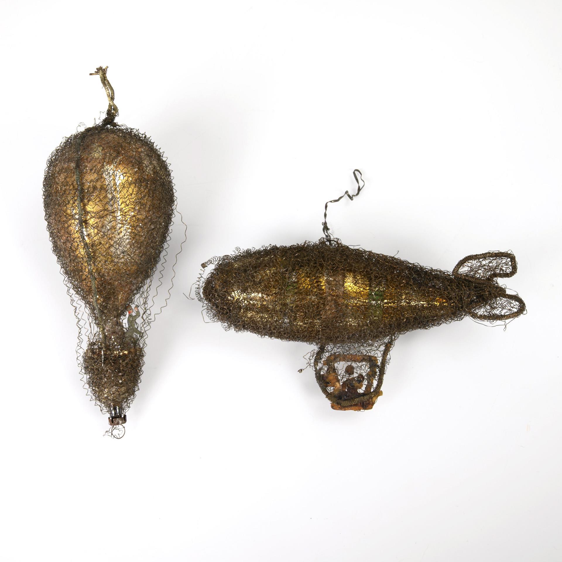 Zeppelin und Heißluftballon für den Weihnachtsbaum. Altersspuren.