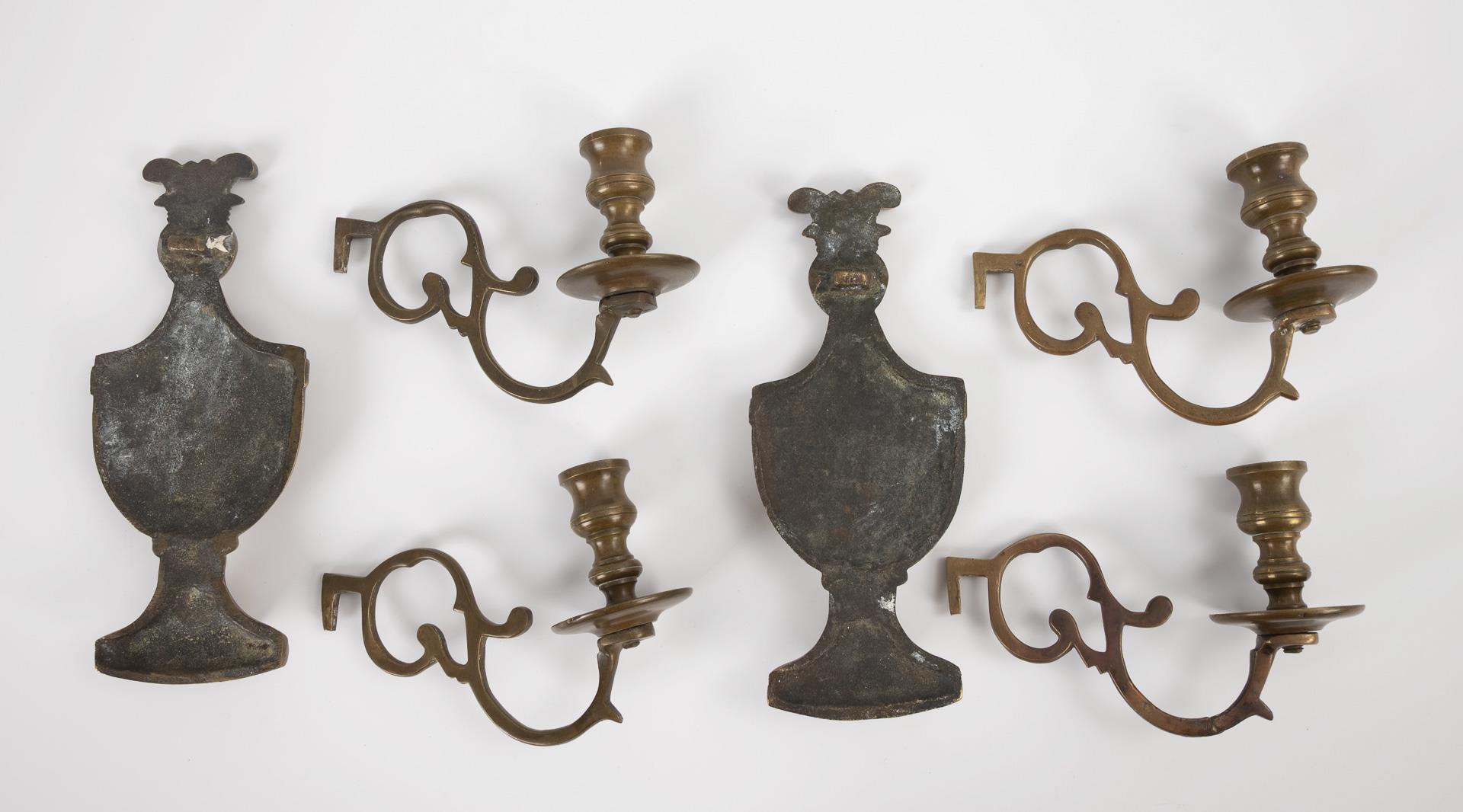 Vasenförmige Wandhalter mit 2 eingesteckten rankenartigen Volutenarmen für die Vasentüllen.