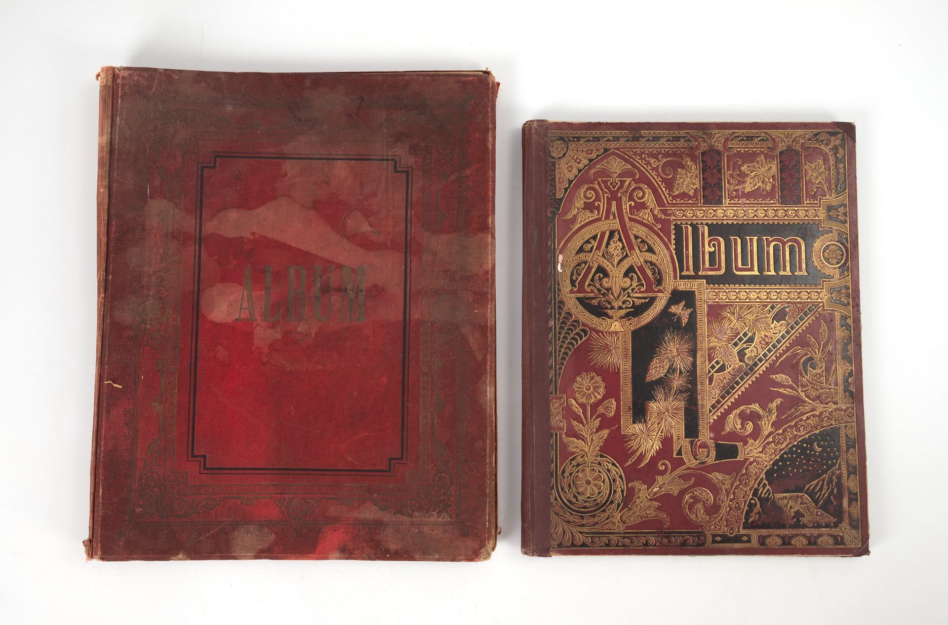 Farblithografien, häufig geprägt. Papp- bzw. Ledereinband je geprägt. Album maximal 45 x 35 cm. Oblate maximal 31 x 28 cm.