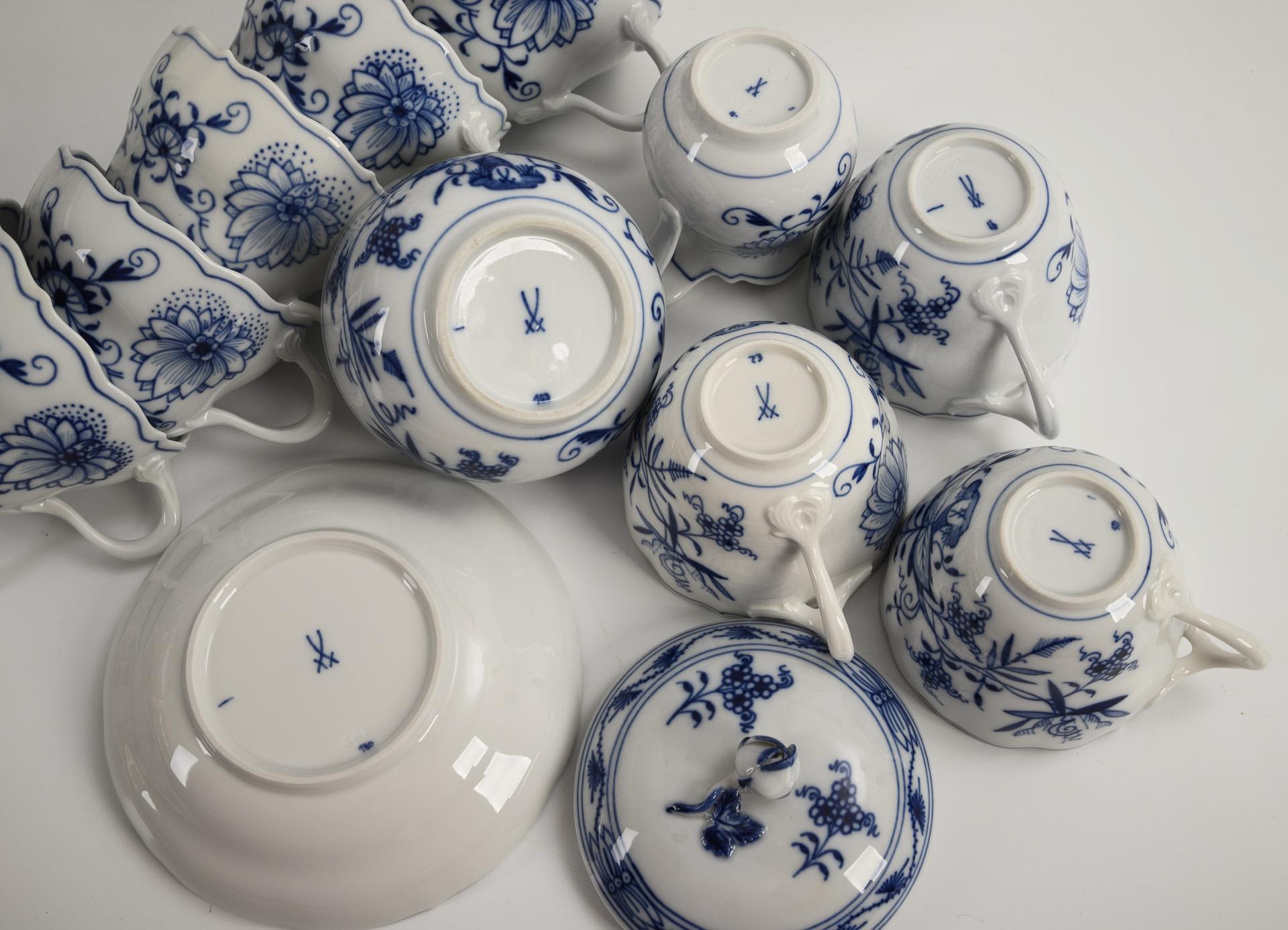 43 Teile eines Zwiebelmuster-Kaffee-/Teeservice. Meissen.
