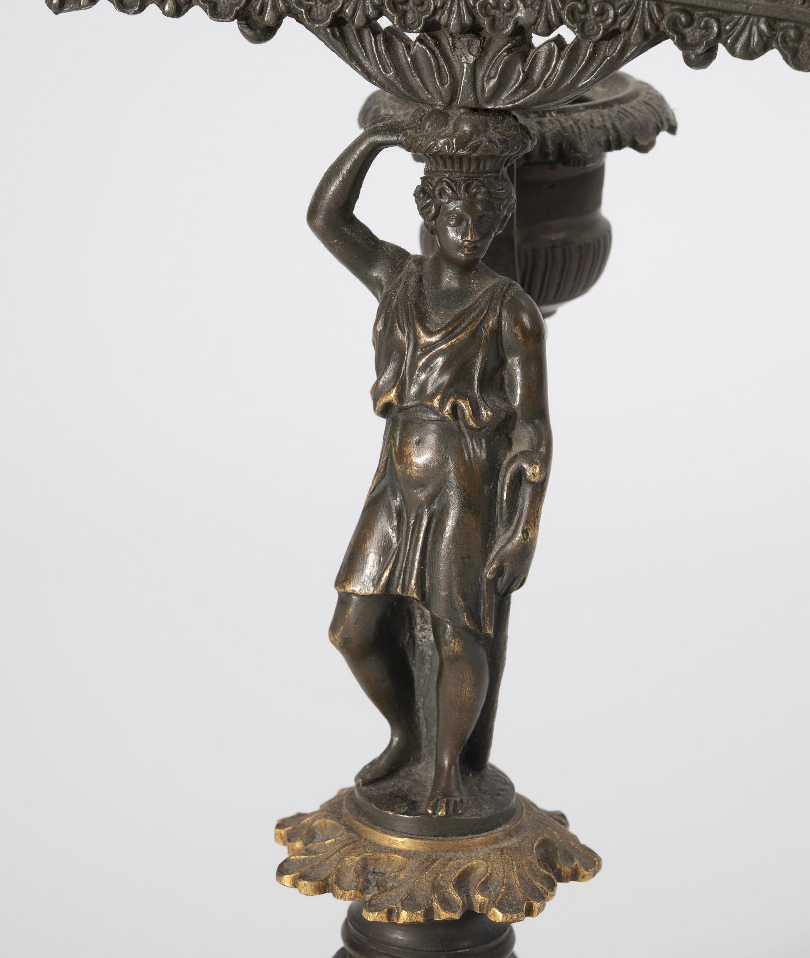 Sie befinden sich hier: Startseite Kategorien Metallarbeiten Figürlicher Kerzenleuchter mit Lichtschirm in der Art des Empire