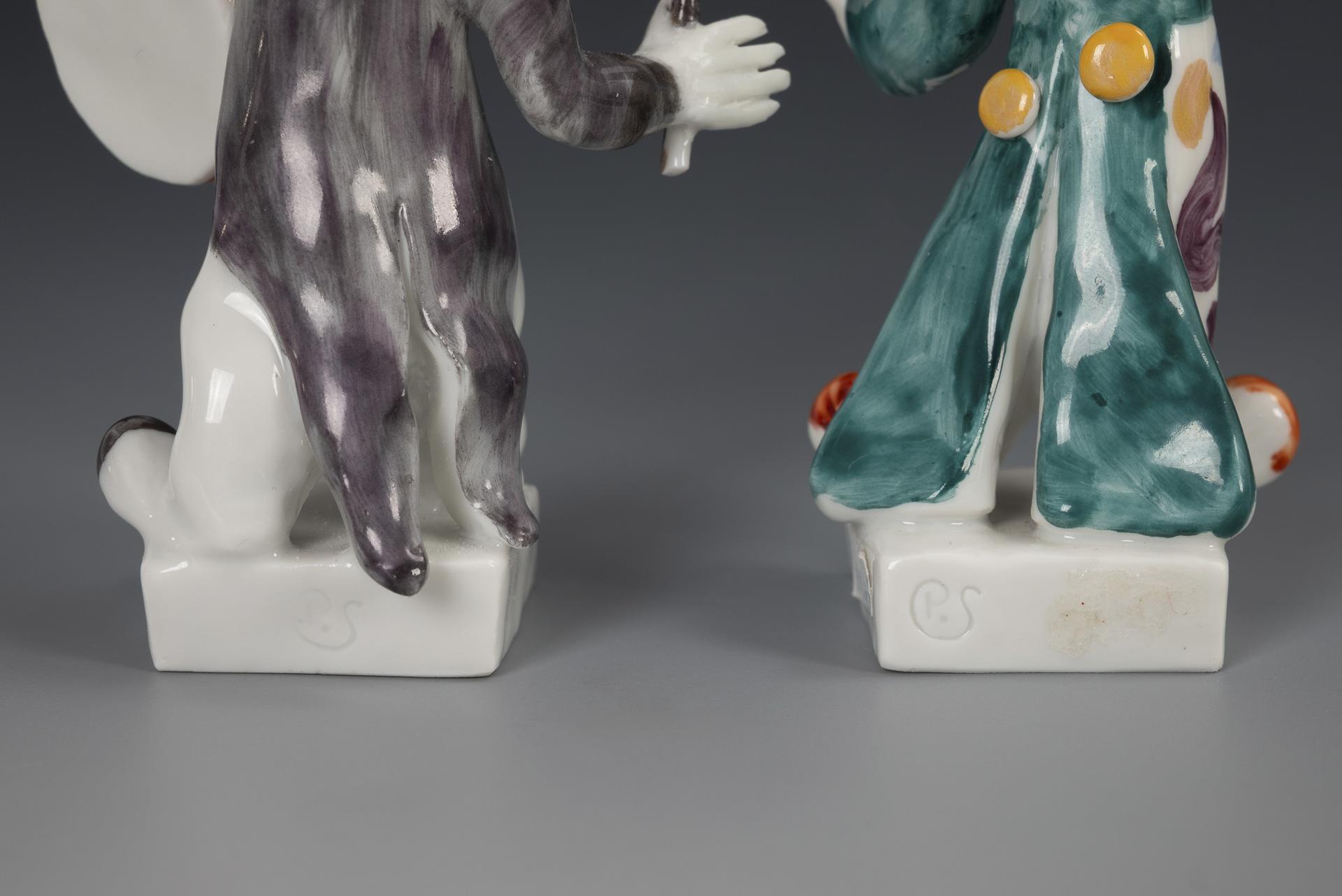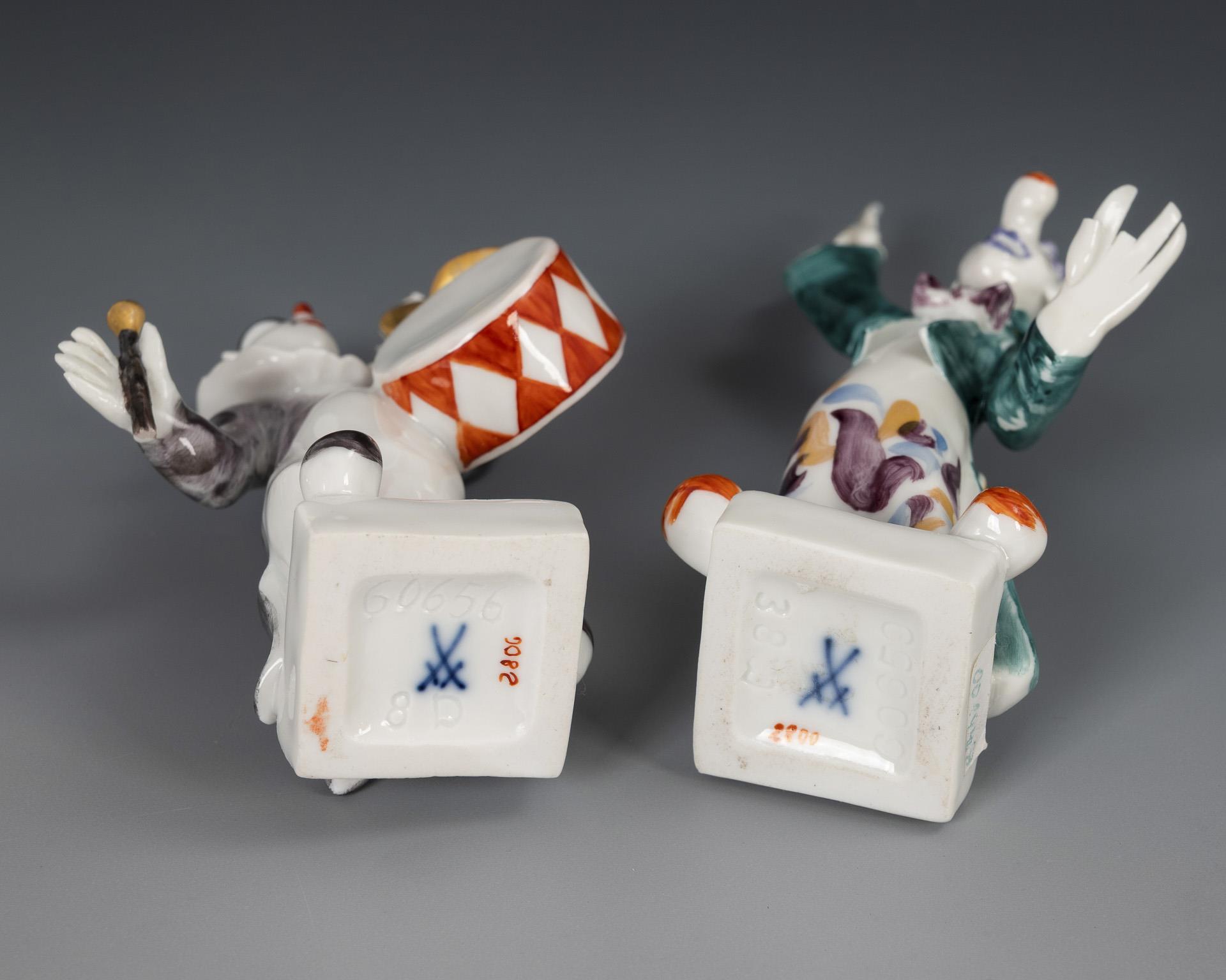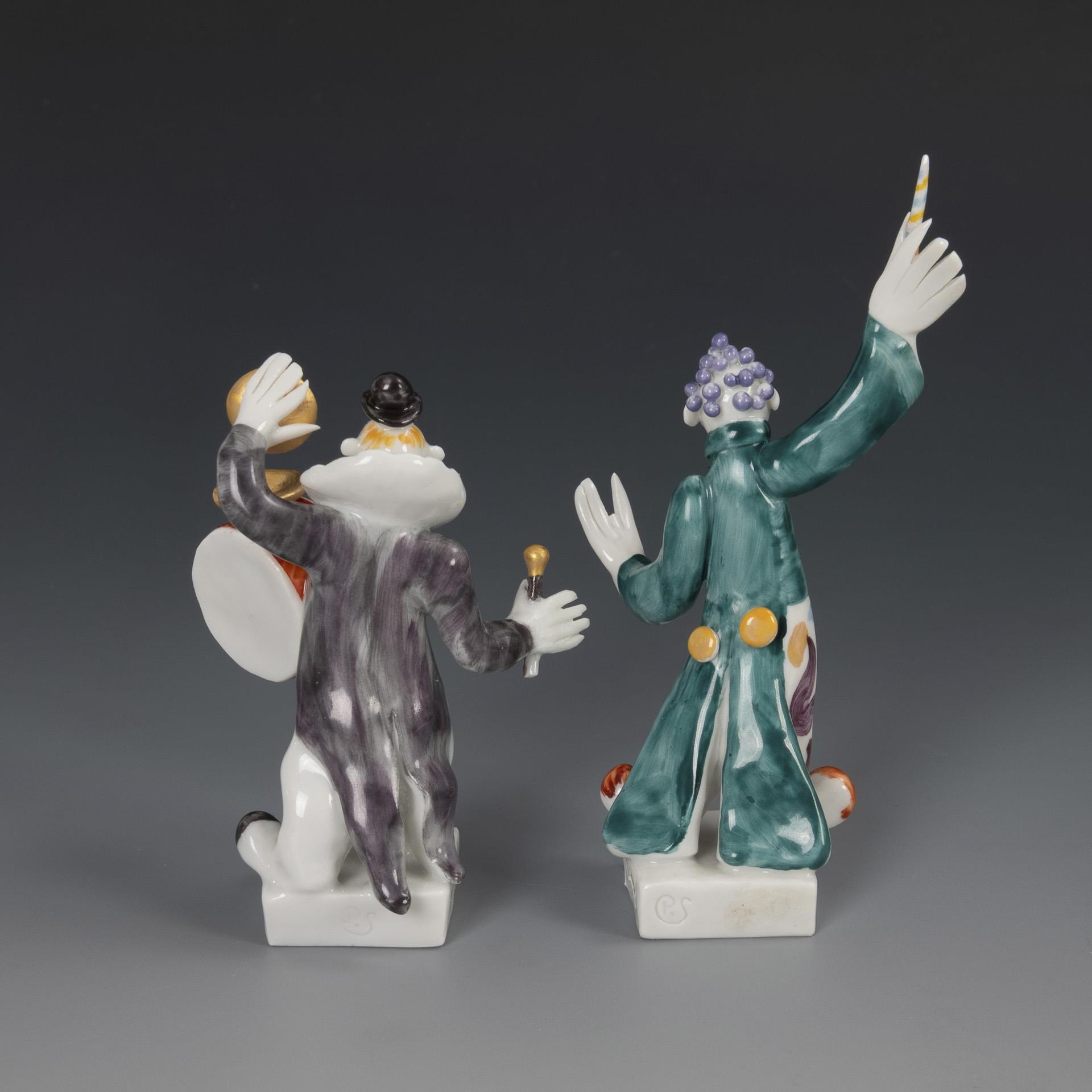 1x Clown mit Pauke, Modell-Nr. 60656. / 1x Clown als Dirigent, Modell-Nr. 60659. Rechte Hand und Stab des Paukers restauriert, 2 Finger des Dirigenten fehlen (davon 1 lose anbei).