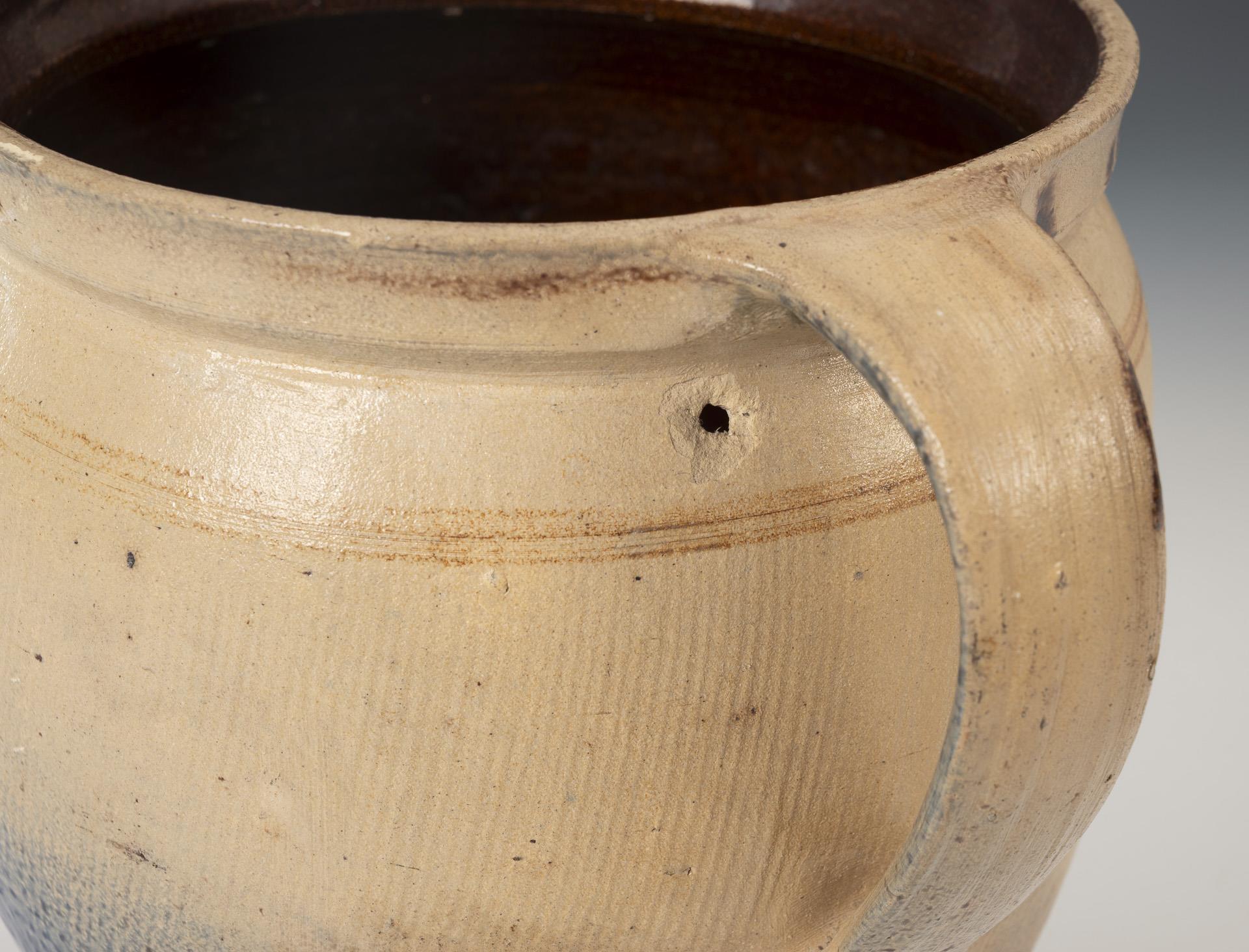 Graues, salzglasiertes Steinzeug mit kobaltblauem Smaltebewurf, innen braun glasiert. H 11 bis 43 cm. Gesamt 5,4 kg.