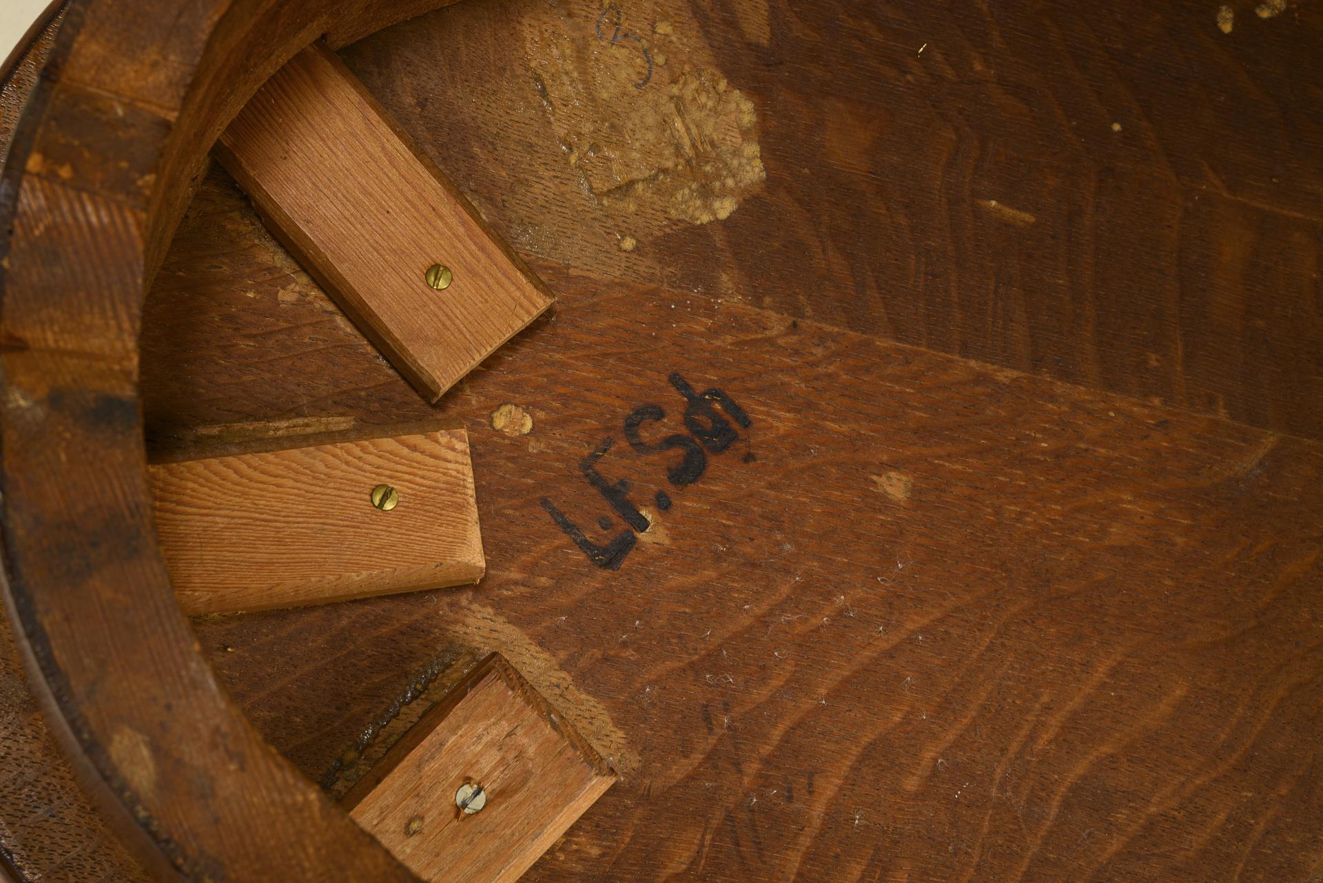 Unterseitig bekrönte Brandmarke mit den Monogrammen "S.R." und "LF.Sch". Ende 19. Jh.