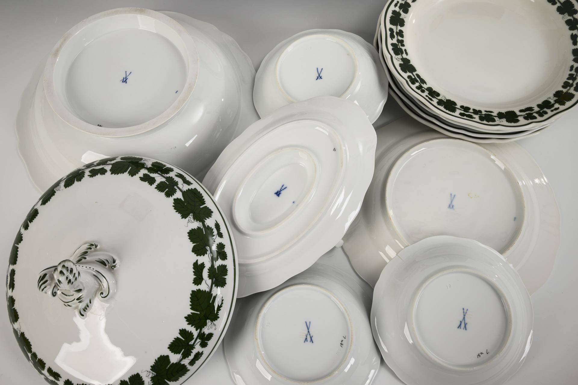 15 Teile eines Speiseservice mit Weinlaubdekor. Meissen.