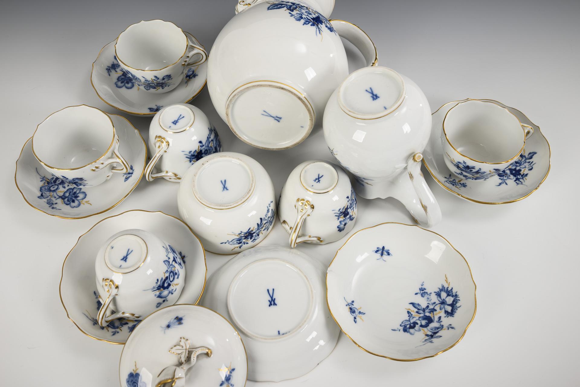 Mokkaservice mit blauer Blumenmalerei. Meissen.