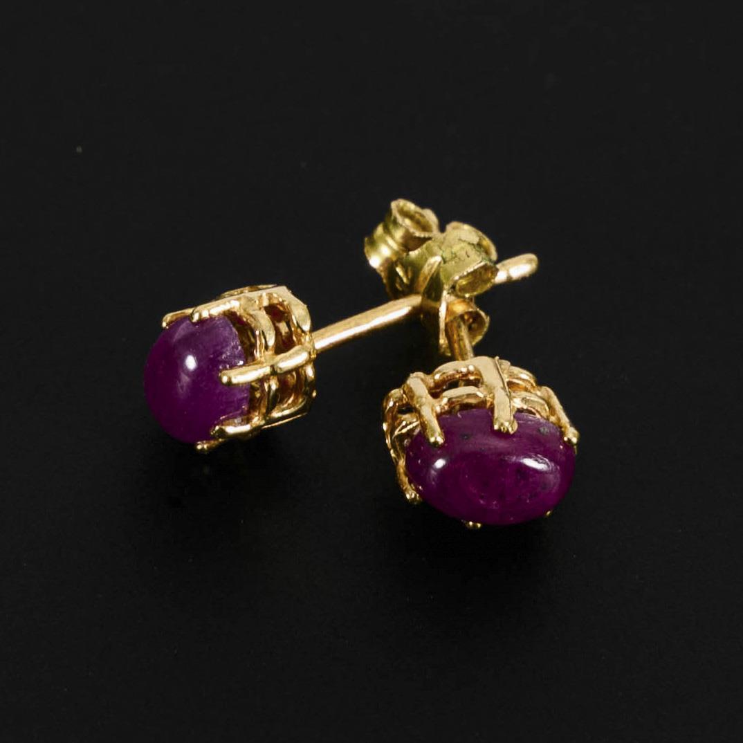 Ohrsteckerpaar mit roten Farbsteinen, wohl Rubinen.