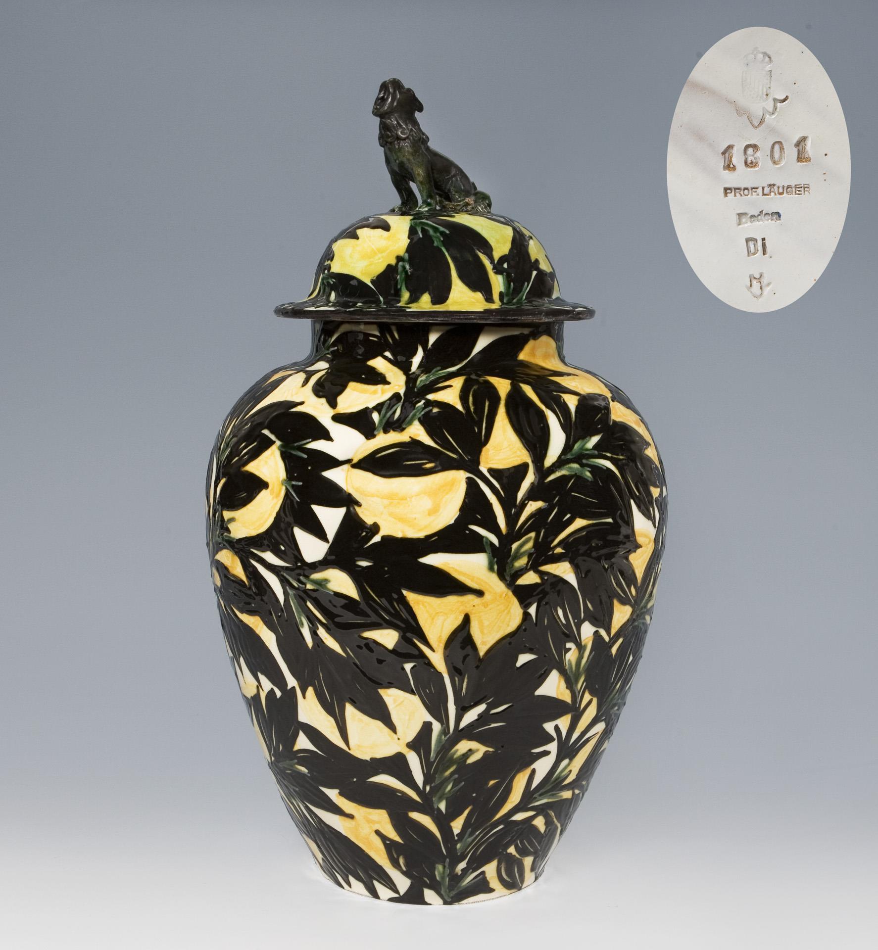 Große Laeuger-Deckelvase "Zitronen". Karlsruher Majolika.