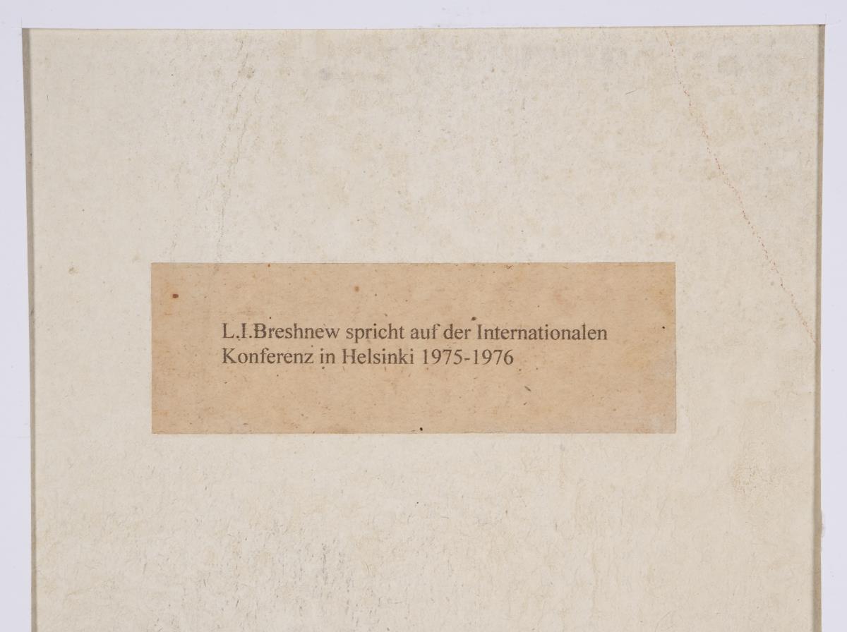 Rückseitig bezeichnet: Breschnew spricht auf der Internationalen Konferenz in Helsinki 1975-1976. Auf Karton montiert. Profilrahmen.