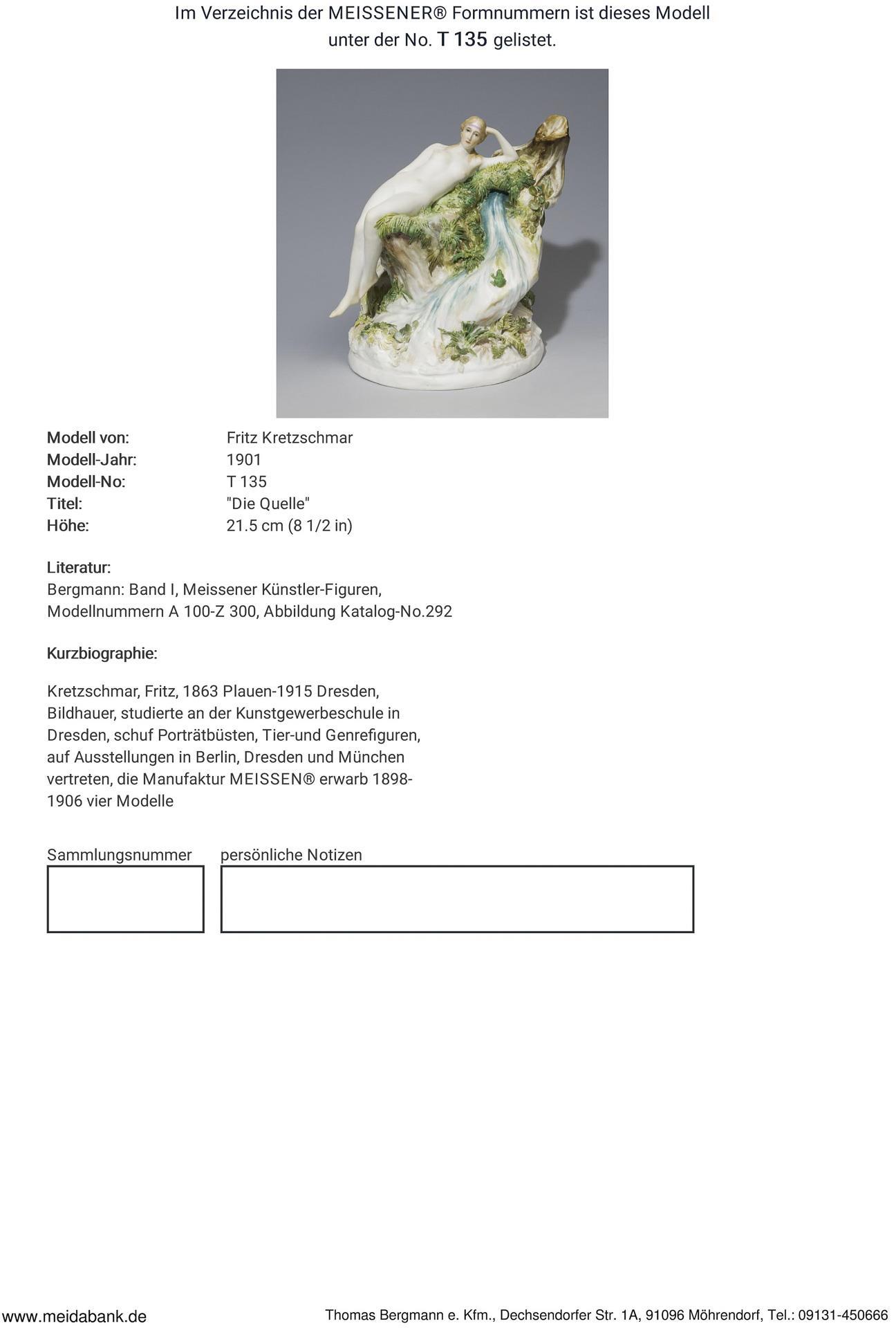 Ausformung 1901-1923. Modell-Jahr: 1901, Modell-Nr. T 135. Modell von. KRETZSCHMAR, Fritz(1863 Plauen - 1915 Dresden)