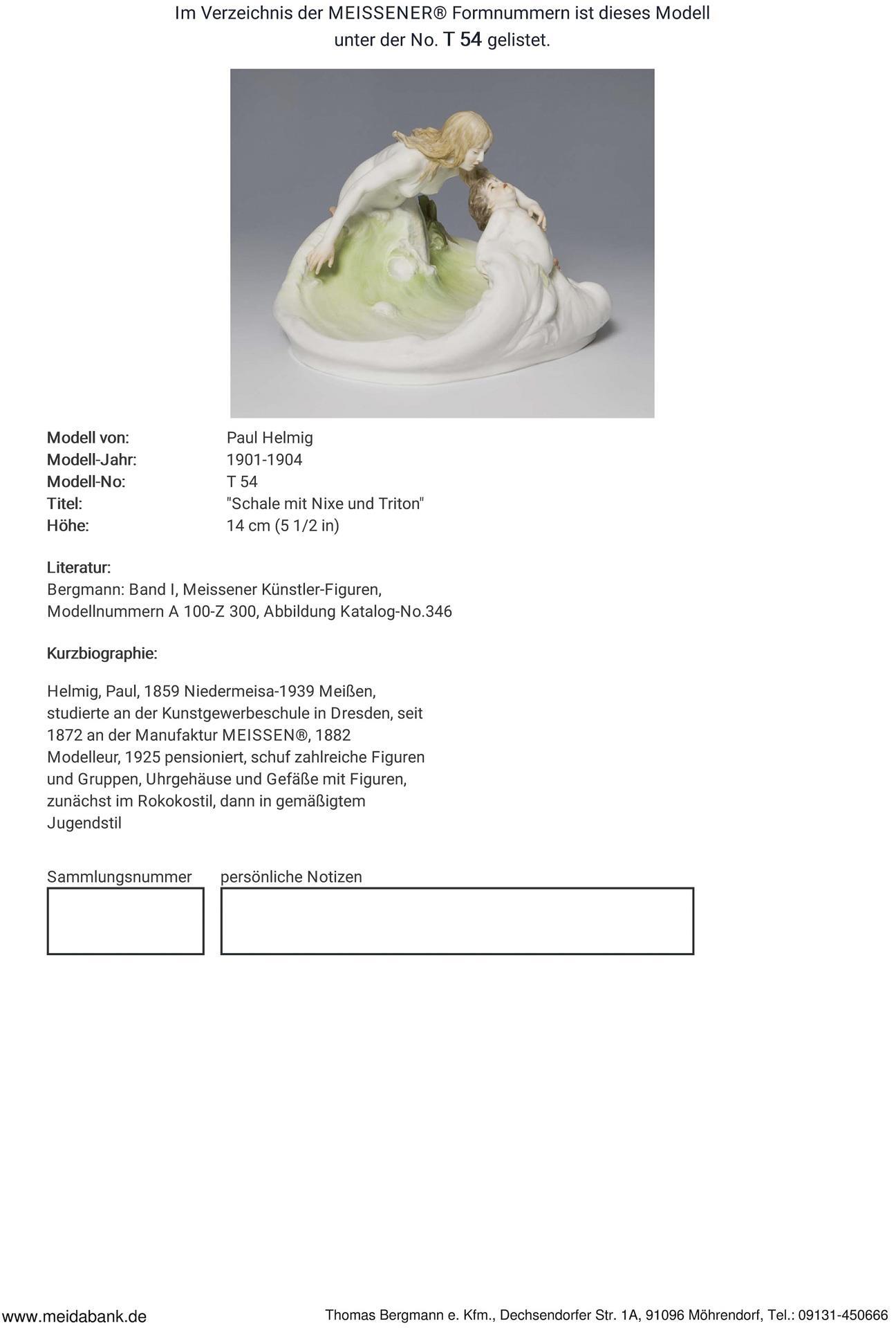 Ausformung 1901-1923. Modell-Jahr: 1901-1904, Modell-Nr. T 54. Modell von. HELMIG, Paul(1859 Niedermeisa - 1939 Meißen)