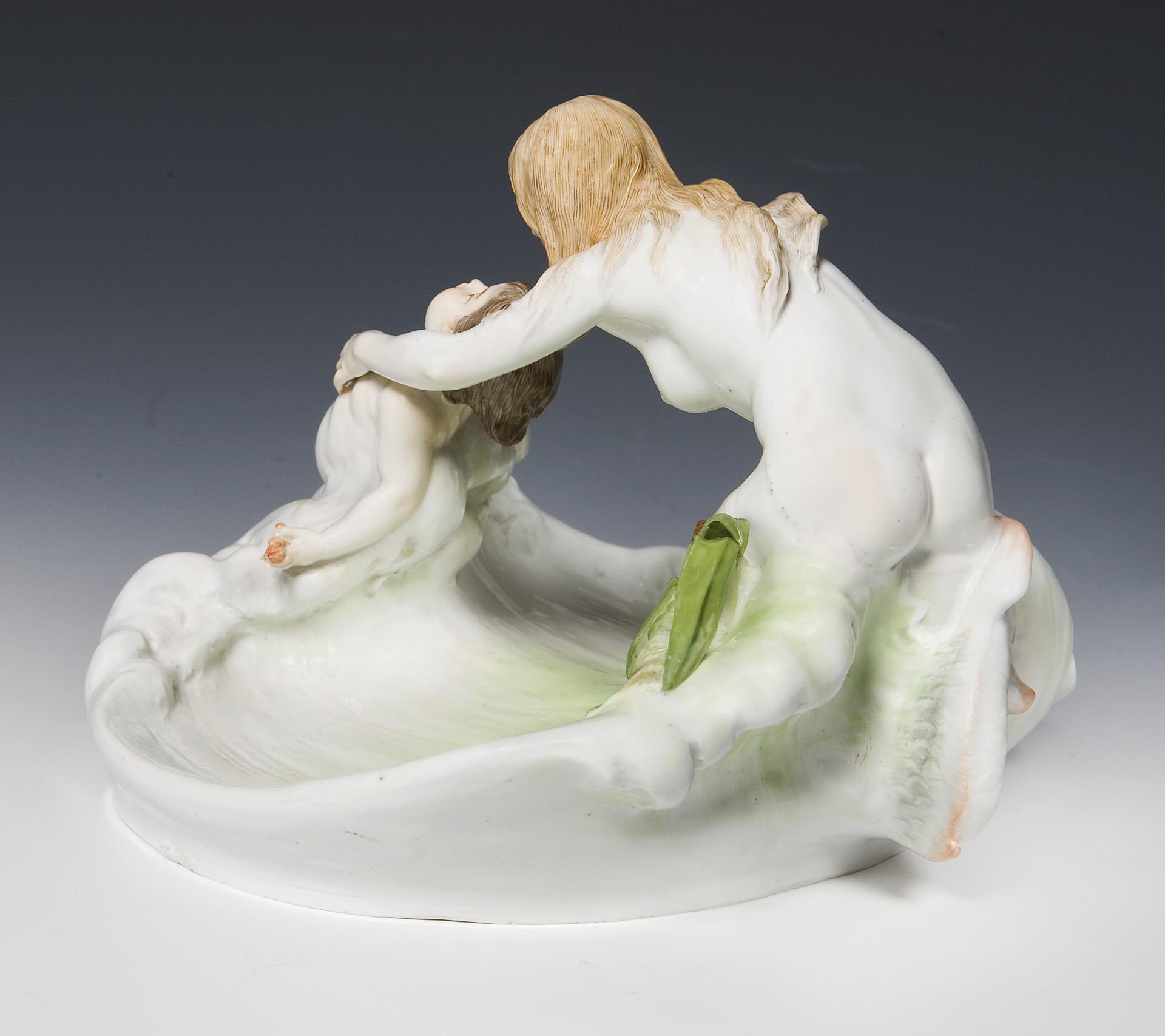 Jugendstil-Schale mit Nixe und Triton. Meissen.