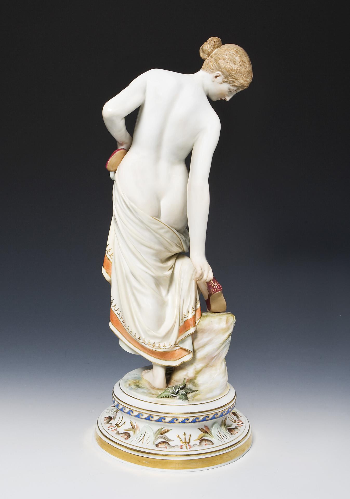 Große weibliche Akt-Figur: Nach dem Bade. Meissen.
