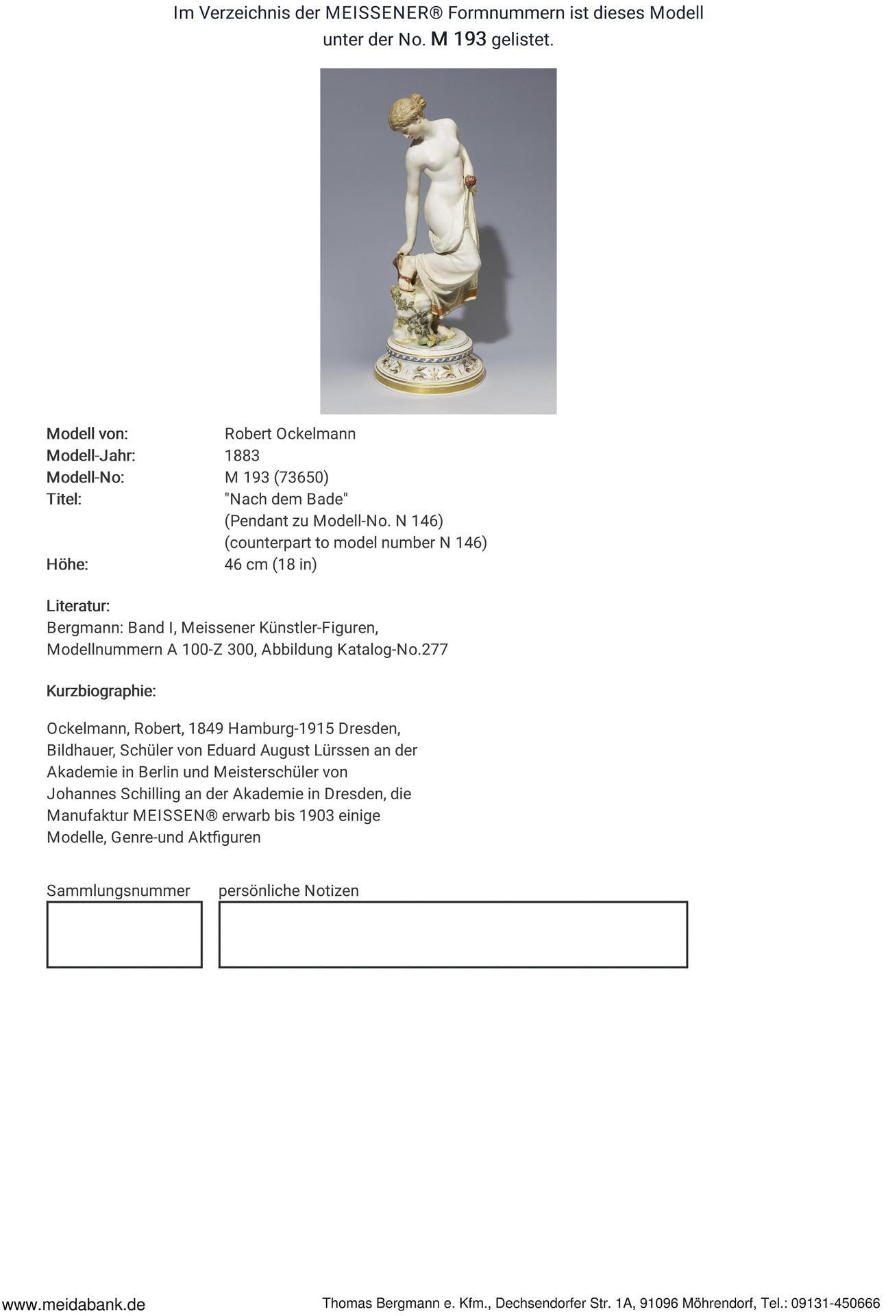 Ausformung 1883-1923. Modell-Jahr: 1883, Modell-Nr. M 193 (neue Form-Nr. 73650). Modell von. OCKELMANN, Robert(1849 Hamburg - 1915 Dresden)