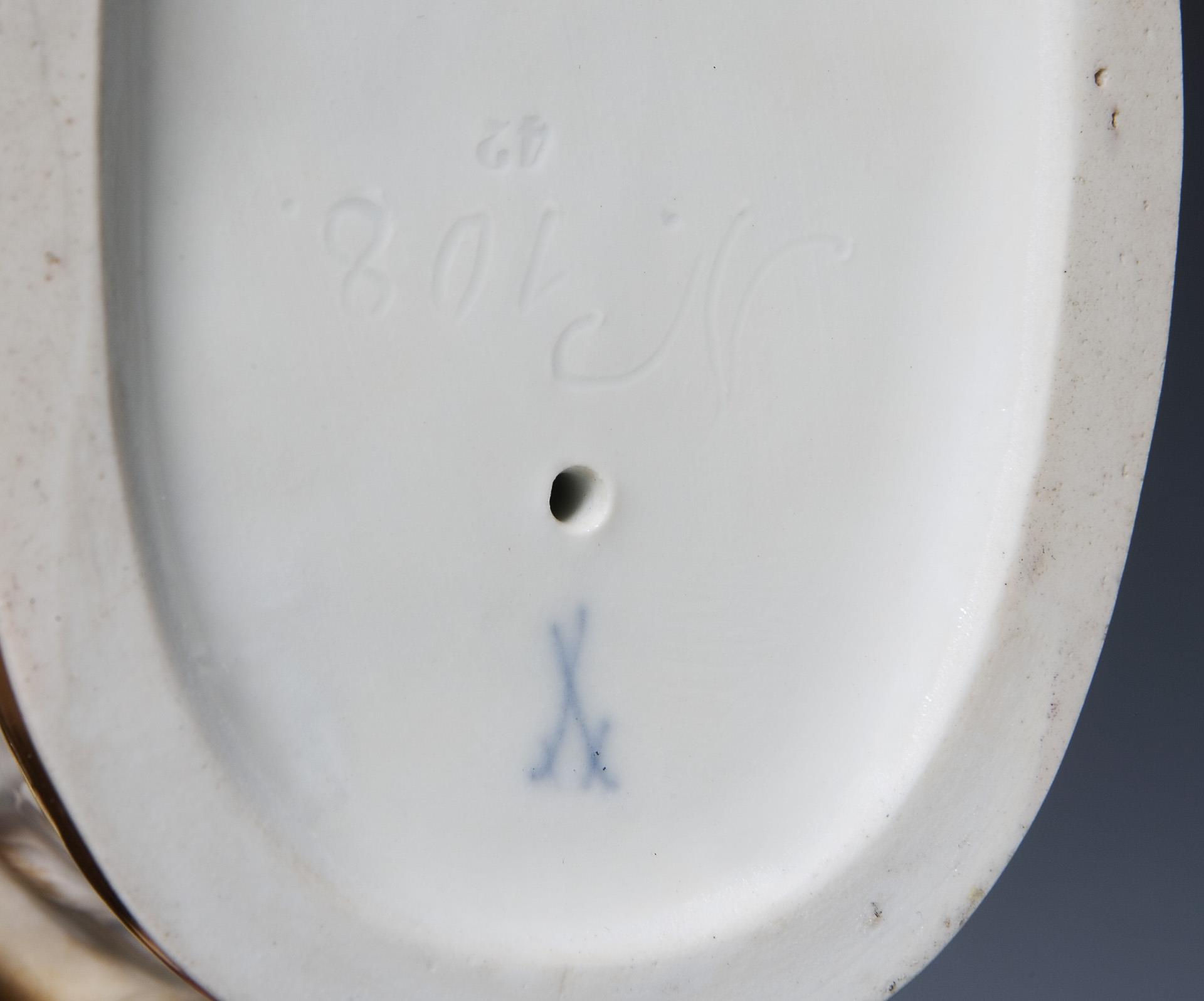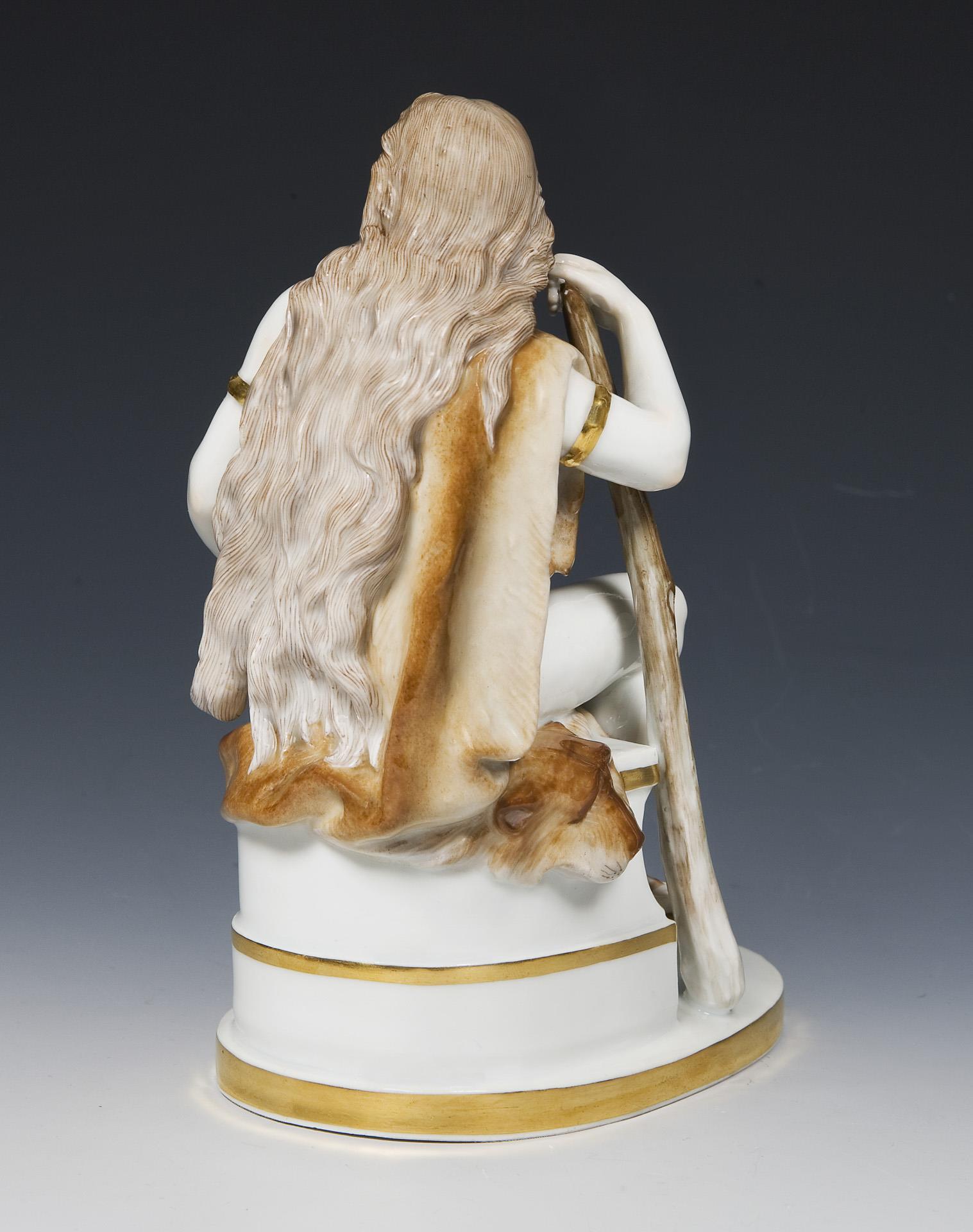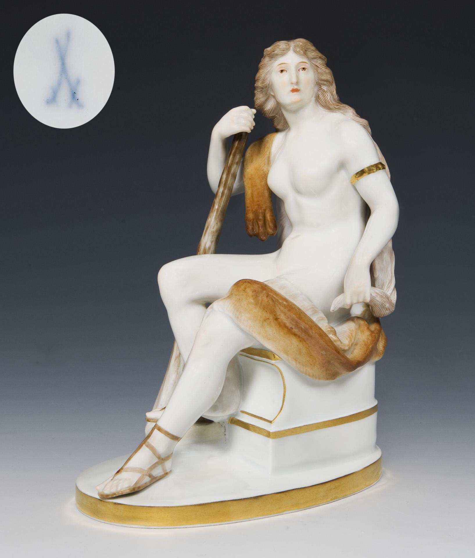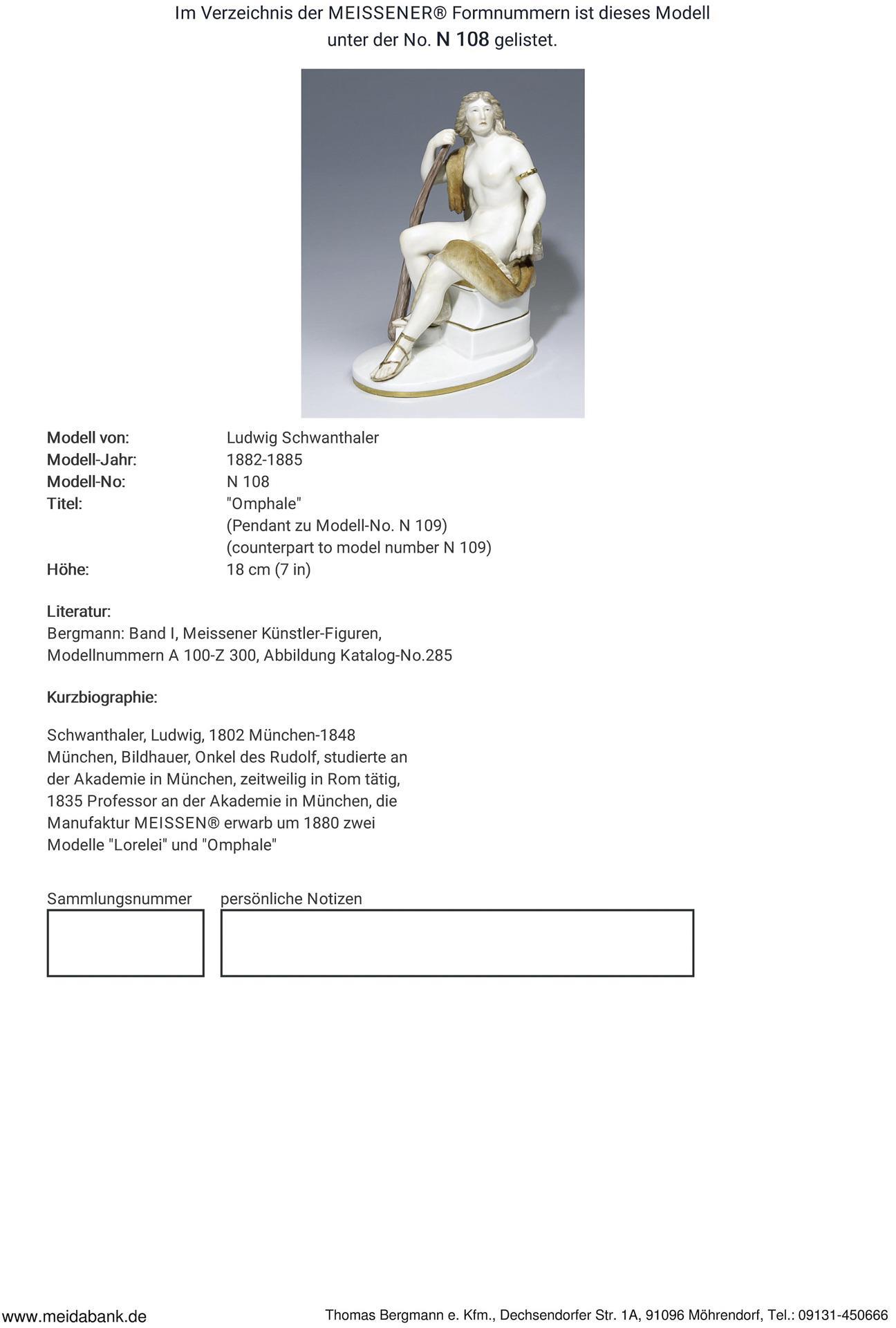 Pendant zu Modell-Nr. N 109 "Loreley", farbig bemalt, gold staffiert. Ritzmarke, Pressmarke, Malermarke, Schwertermarke. Omphale: Königstochter der griechischen Mythologie, Geliebte von Herkules. Sockel von unten leicht bestoßen.