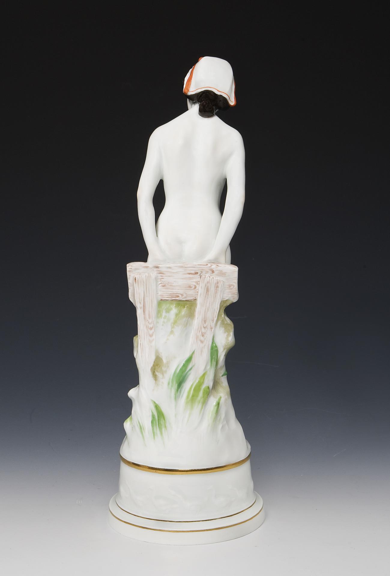 Weibliche Akt-Figur: Mädchen mit Holzschuhen. Meissen.