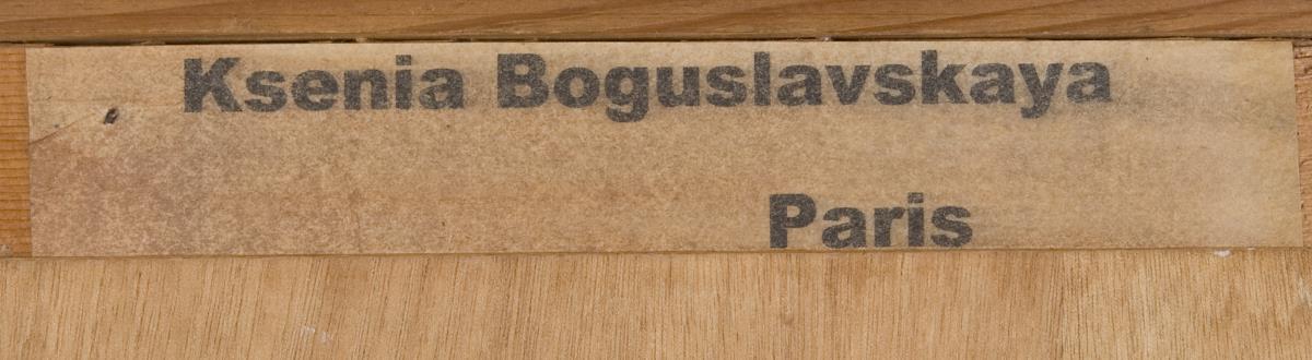 Rückseitig Klebezettel: Ksenia Boguslavskaya Paris. Holzleiste.