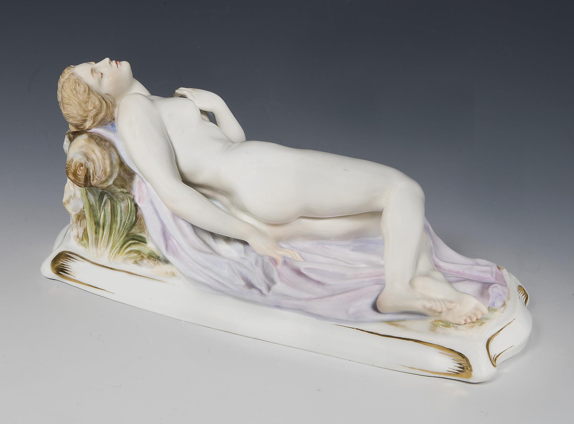 Seltene weibliche Akt-Figur: Schlummernde Venus. Meissen.