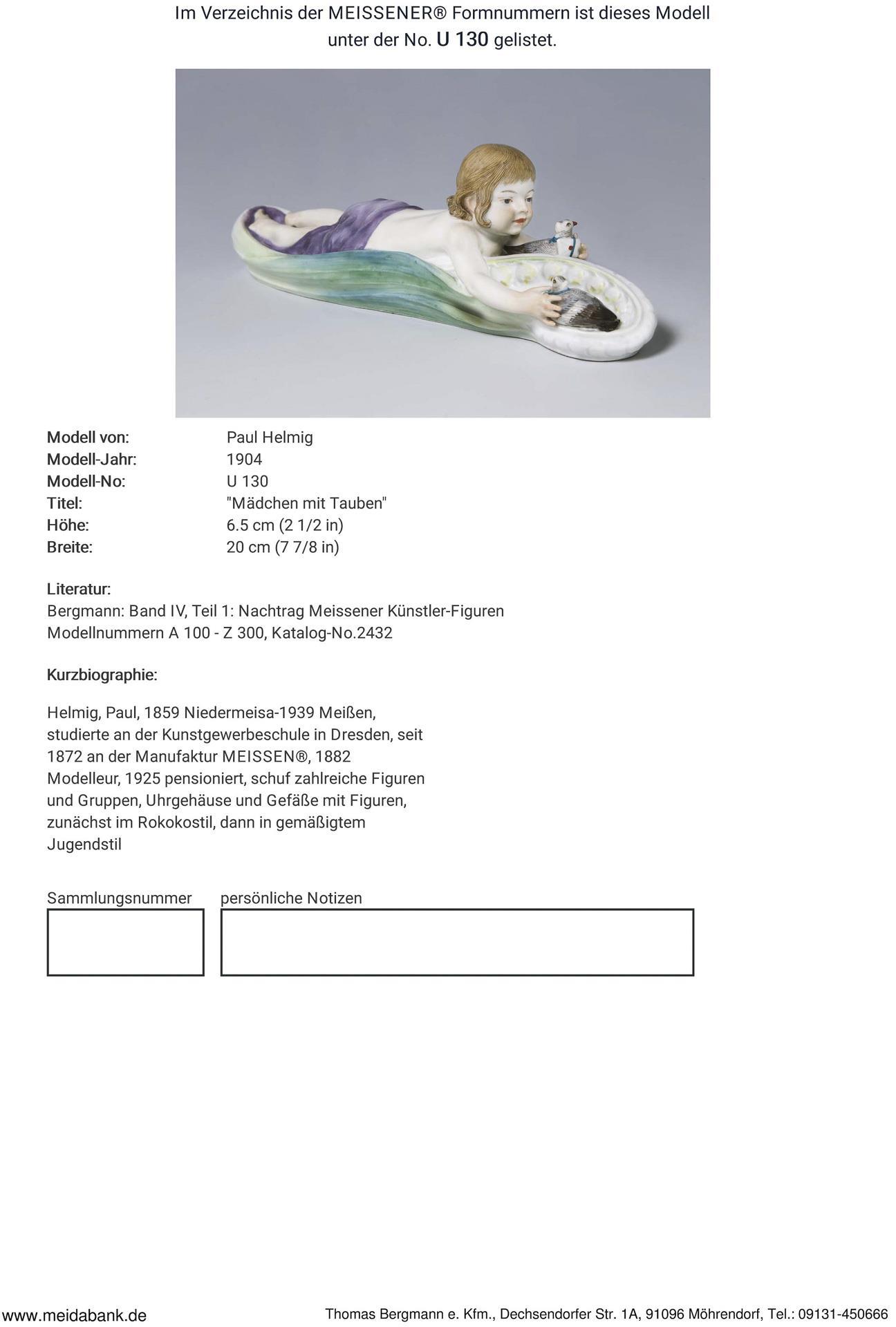 Ausformung 1935-1947. Modell-Jahr: 1904, Modell-Nr. U 130. Modell von. HELMIG, Paul(1859 Niedermeisa - 1939 Meißen)