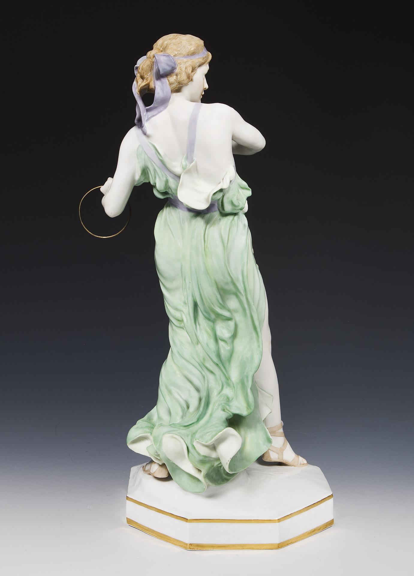 Große Jugendstil-Figur: Reifenspielerin. Meissen.
