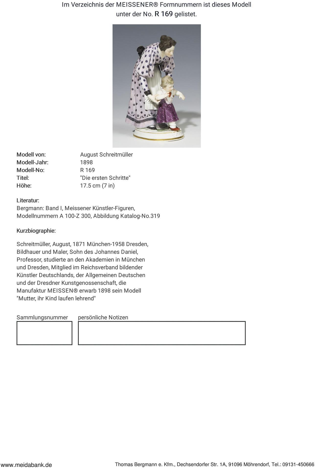 Ausformung 1898-1923. Modell-Jahr: 1898, Modell-Nr.R 169. Modell von. SCHREITMÜLLER, August(1871 München - 1958 Dresden)