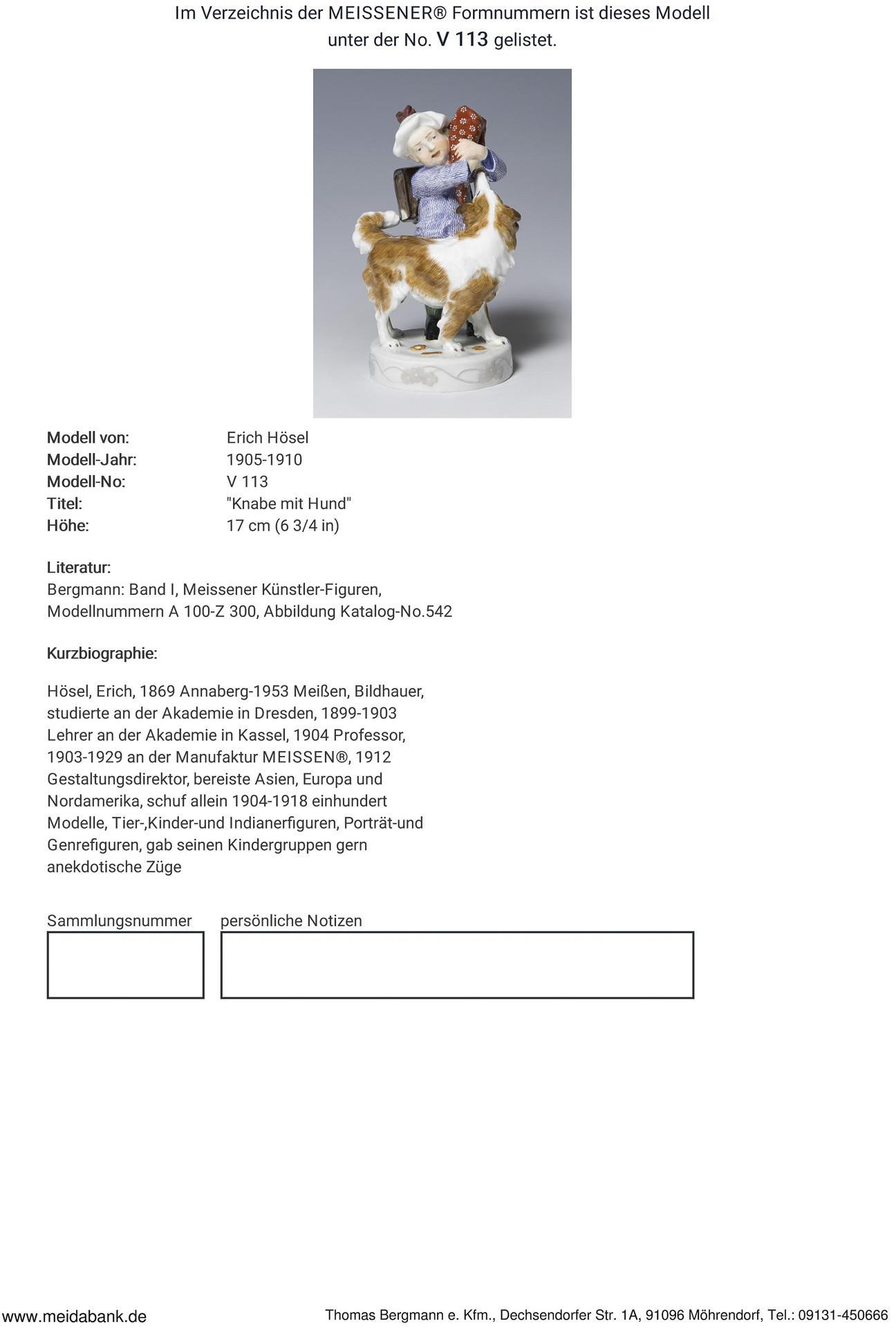 Ausformung 1905-1923. Modell-Jahr: 1905-1910, Modell-Nr. V 113. Modell von. HÖSEL, Erich(1869 Annaberg - 1953 Meißen)