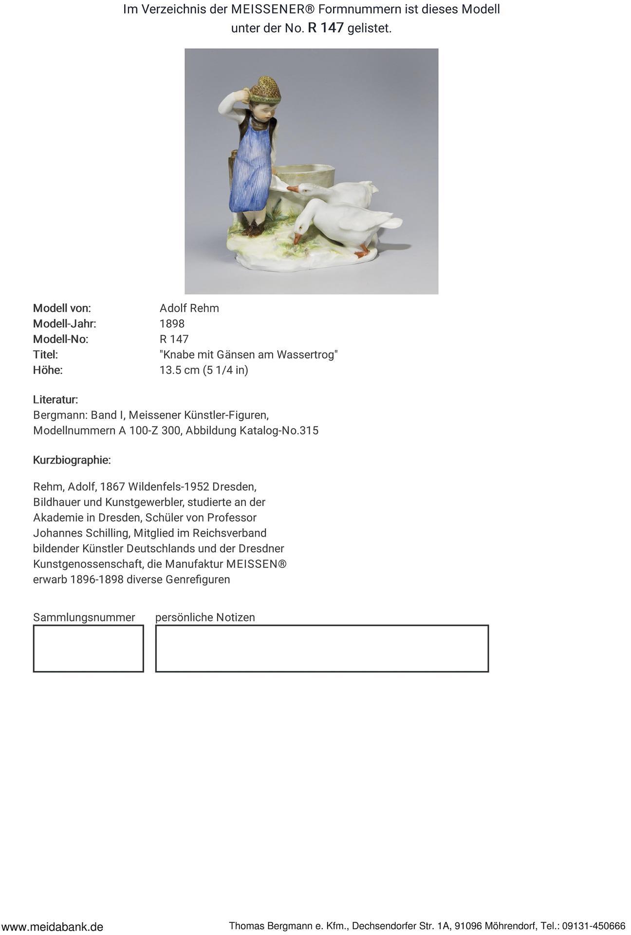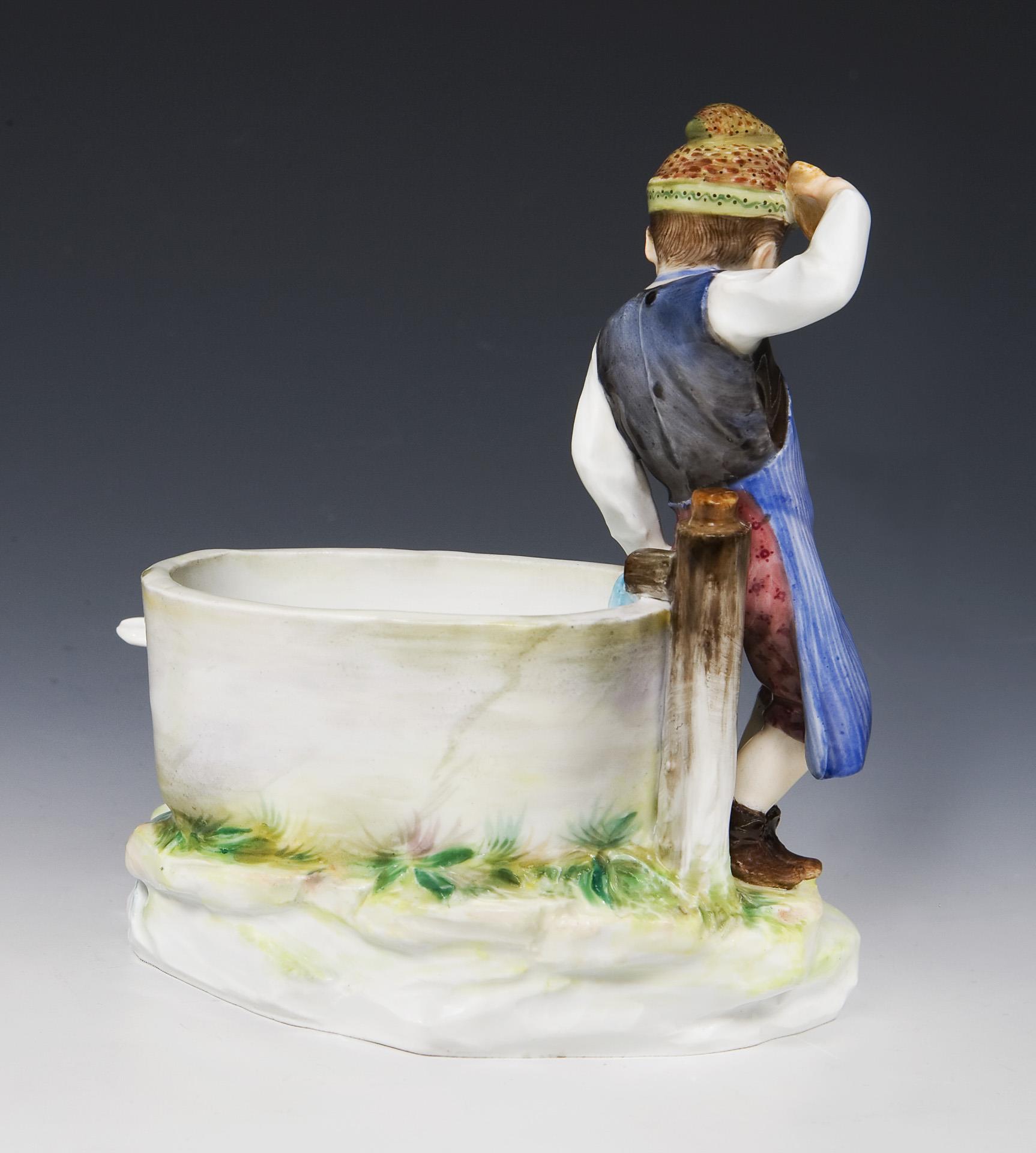 Jugendstil-Figur: Bub mit Gänsen am Wassertrog. Meissen.