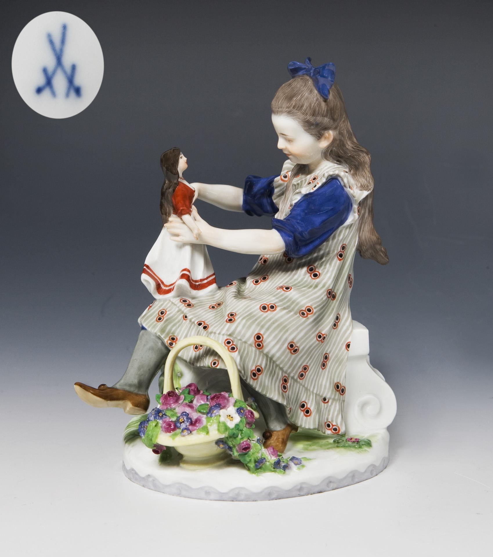 Jugendstil-Figur: Mädchen mit Puppe. Meissen.