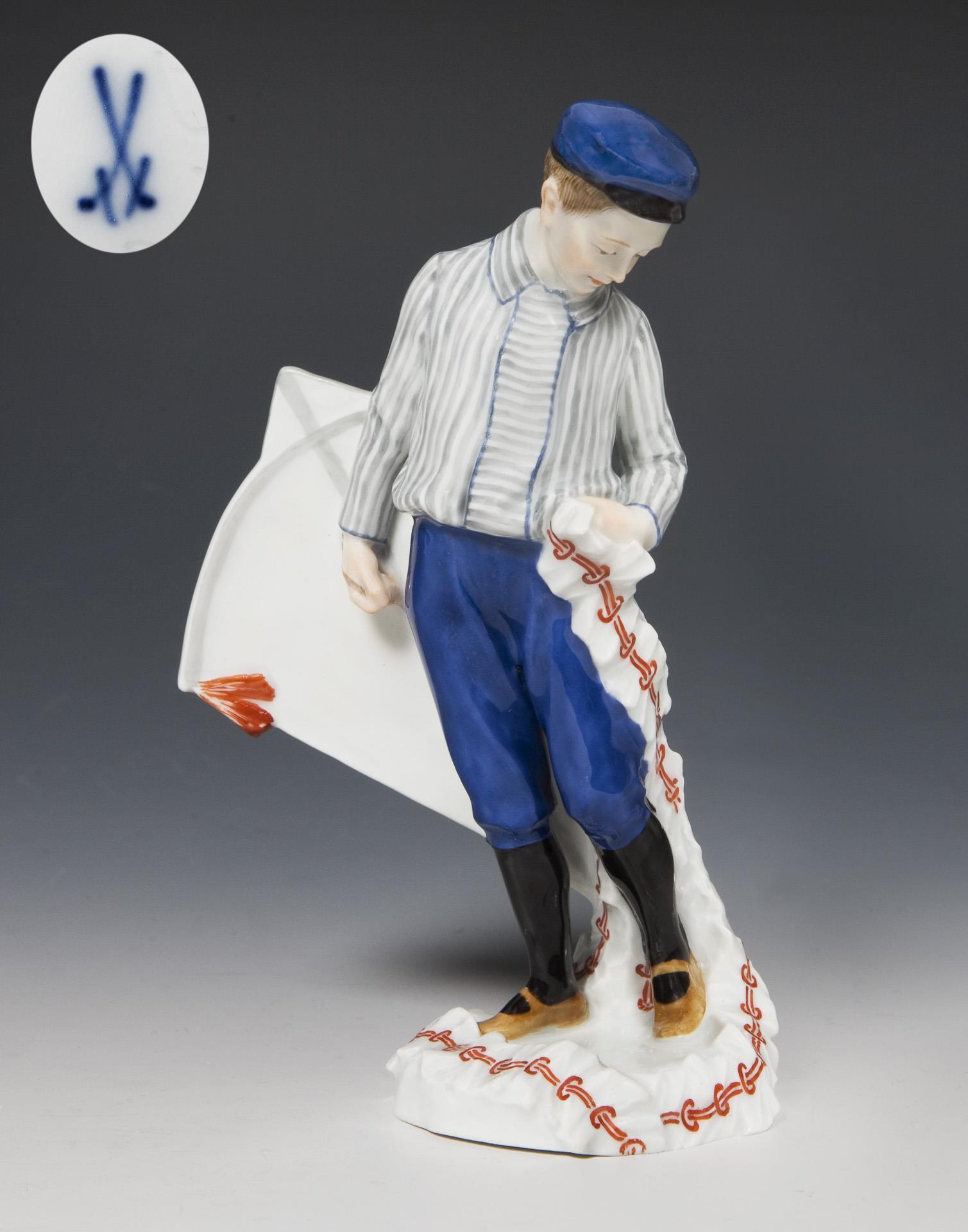 Jugendstil-Figur: Knabe mit Drachen. Meissen.