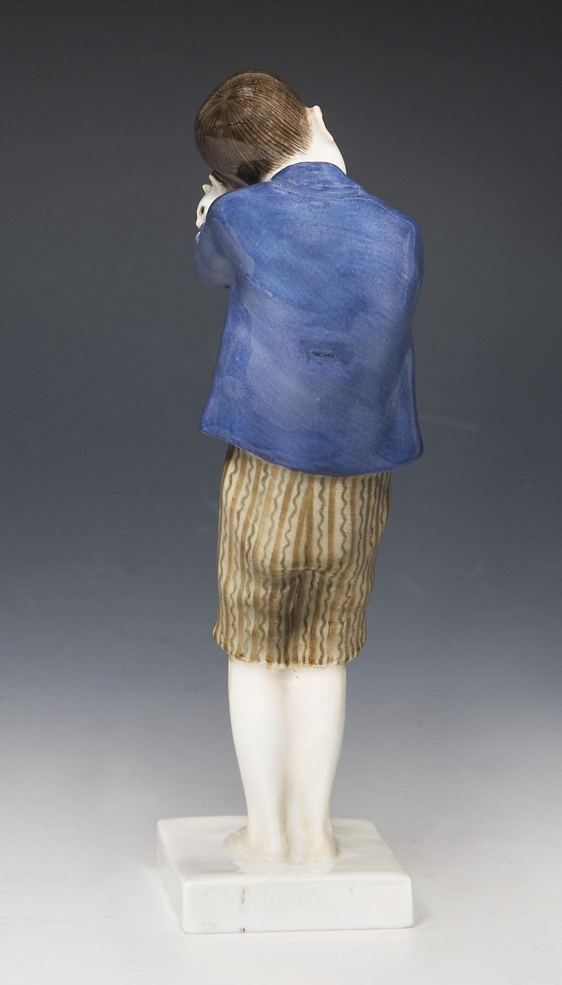 Jugendstil-Figur: Knabe mit Katze. Meissen.