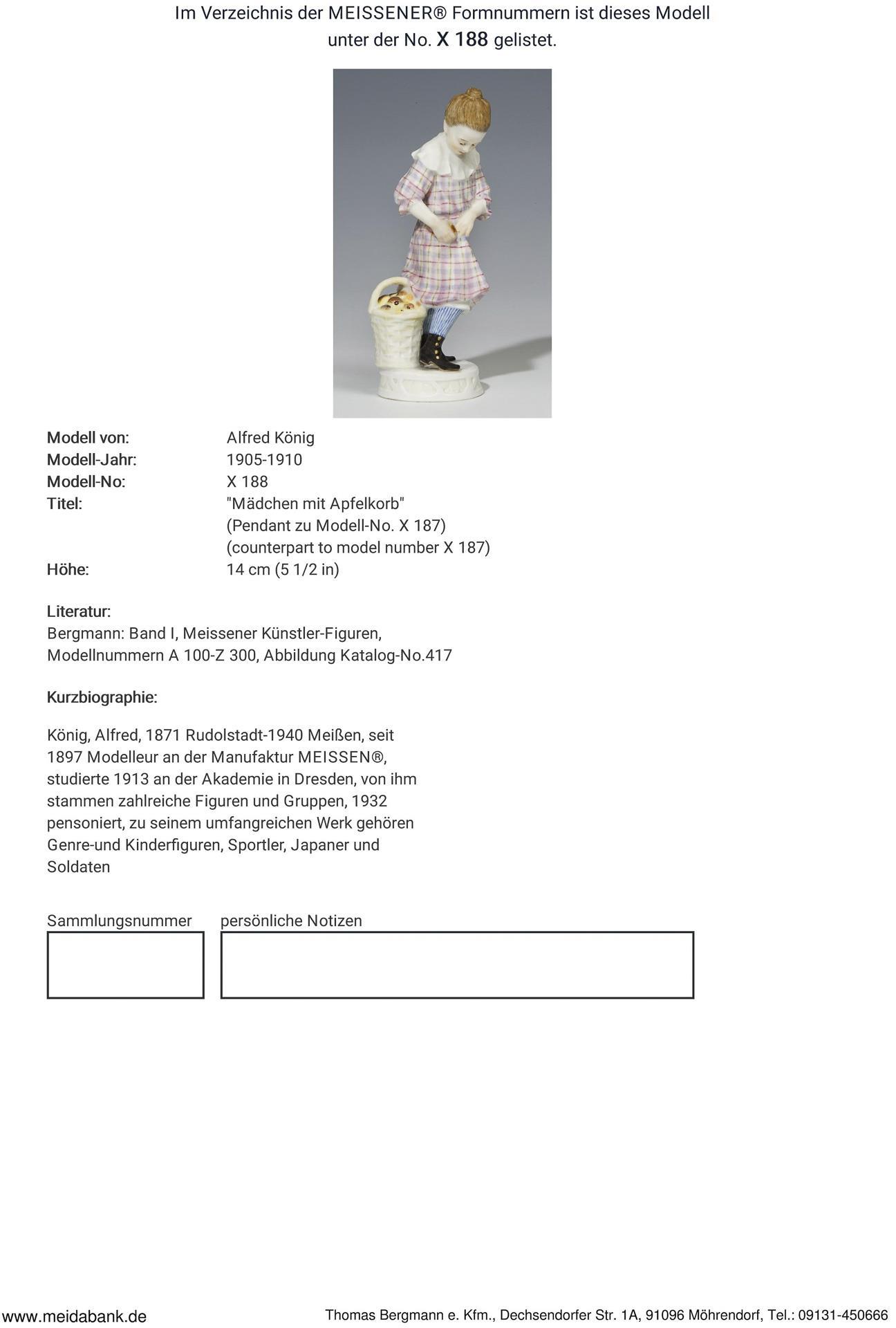 Ausformung 1905-1923. Modell-Jahr: 1905-1910, Modell-Nr. X 188. Modell von. KÖNIG, Alfred(1871 Rudolstadt - 1940 Meißen)