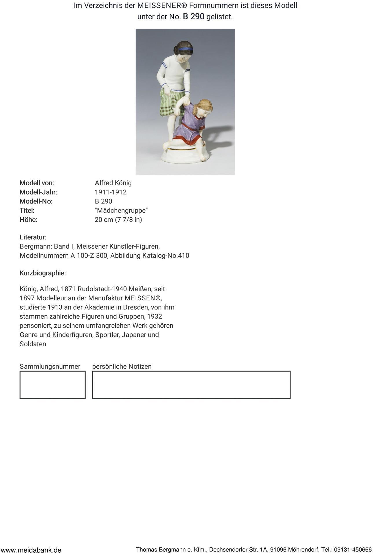 Ausformung 1911-1923. Modell-Jahr: 1911-1912, Modell-Nr. B 290. Modell von. KÖNIG, Alfred(1871 Rudolstadt - 1940 Meißen)