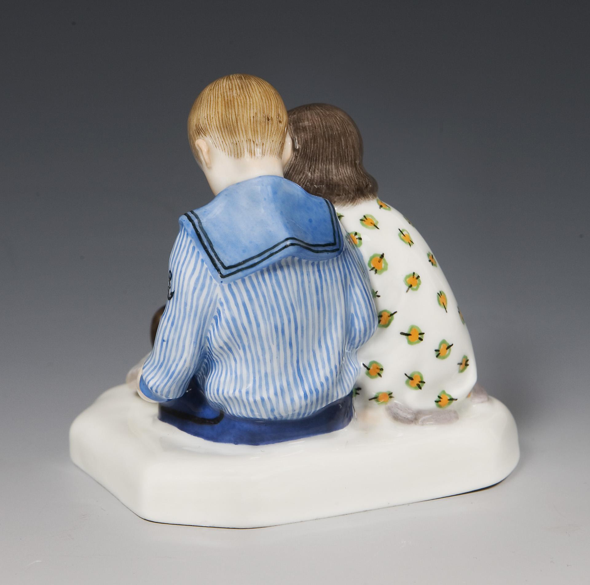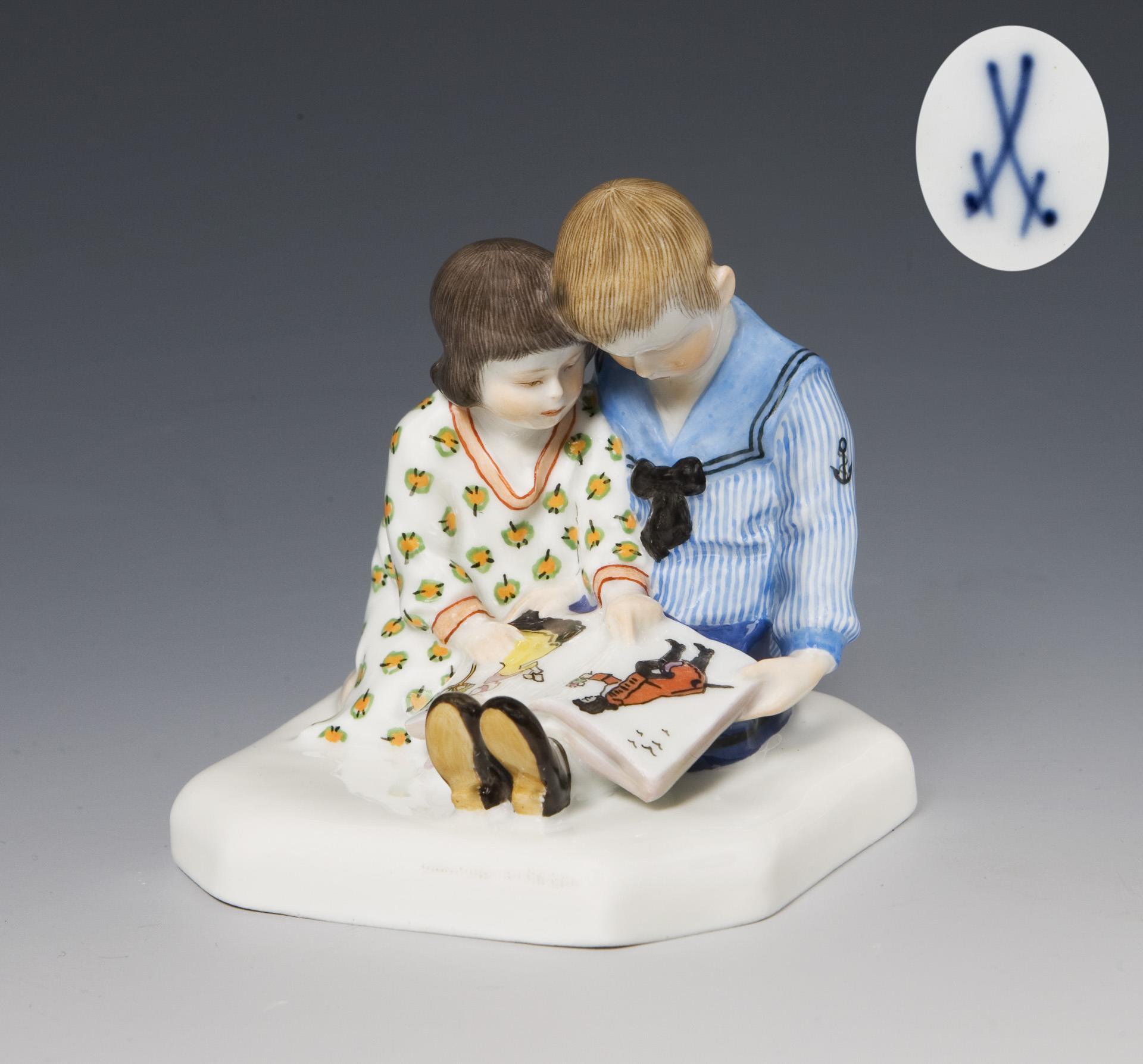 Jugendstil-Figurengruppe: Kinder mit Bilderbuch. Meissen.