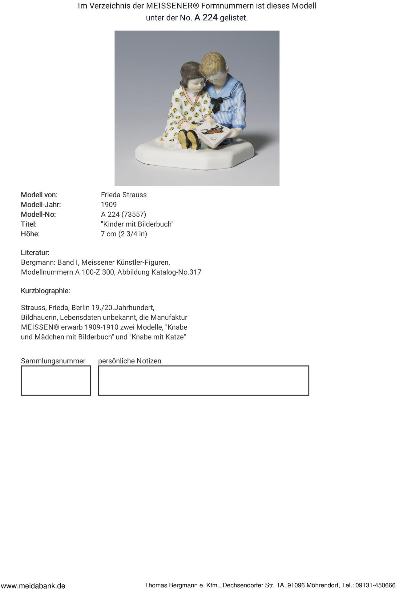 * Frieda Strauss, Bildhauerin in Berlin, Lebensdaten unbekannt. Die Manufaktur Meissen erwarb von ihr zwei Figurengruppen * Meissen-Manufaktur-Preis: 3990,- Euro.