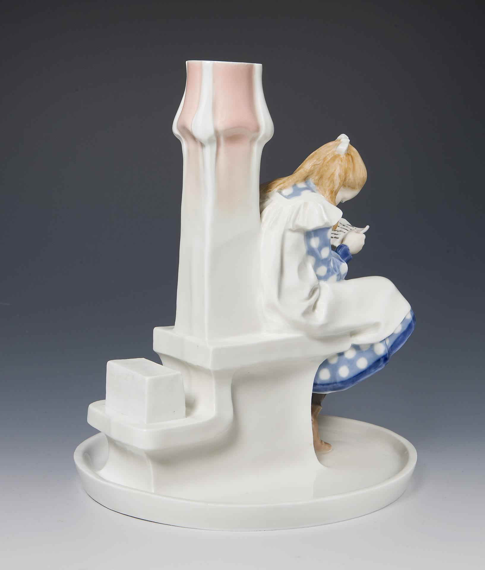 Jugendstil-Figurenleuchter: Mädchen, lesend. Meissen.