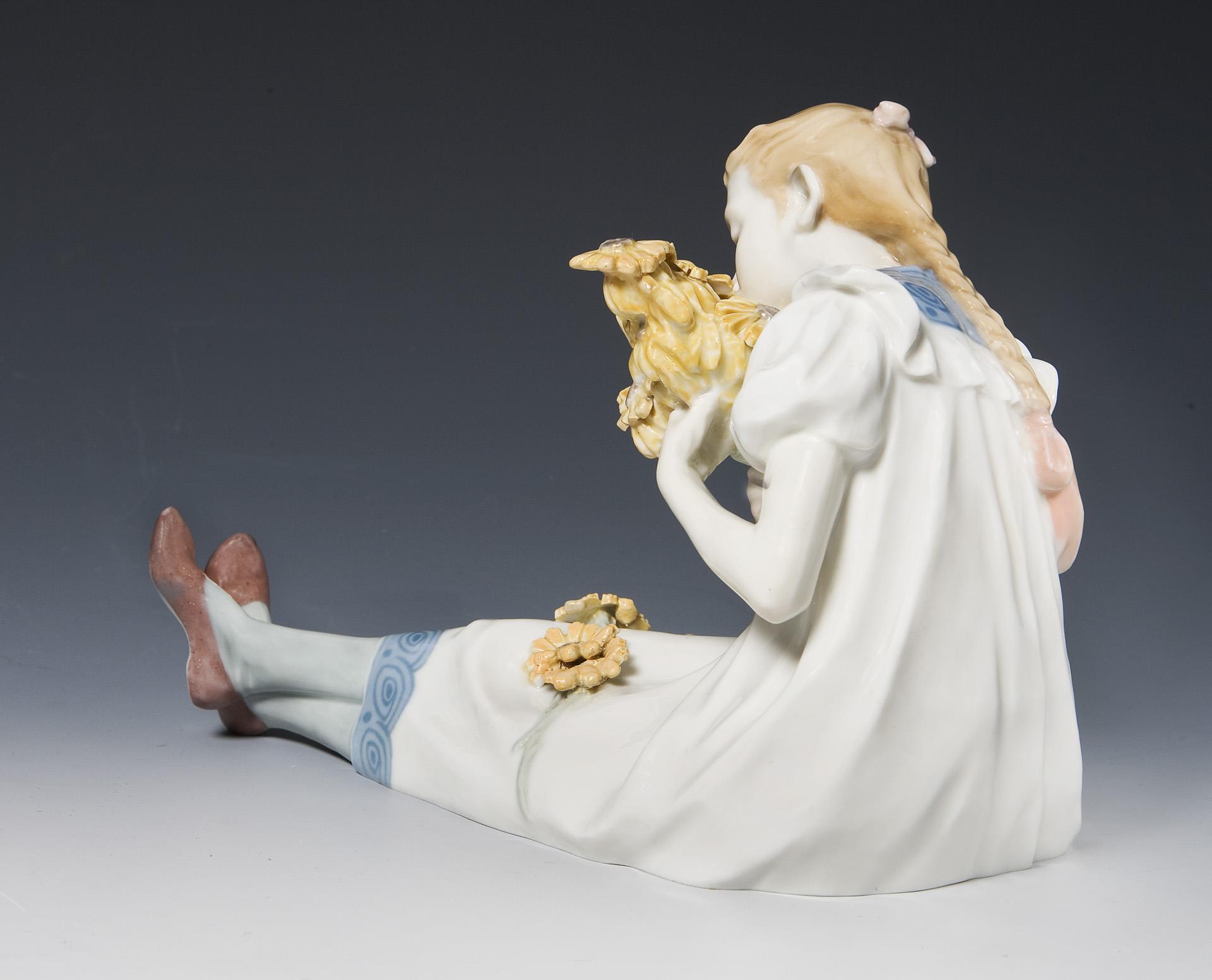 Jugendstil-Figur: Mädchen mit Blumenstrauß. Meissen.