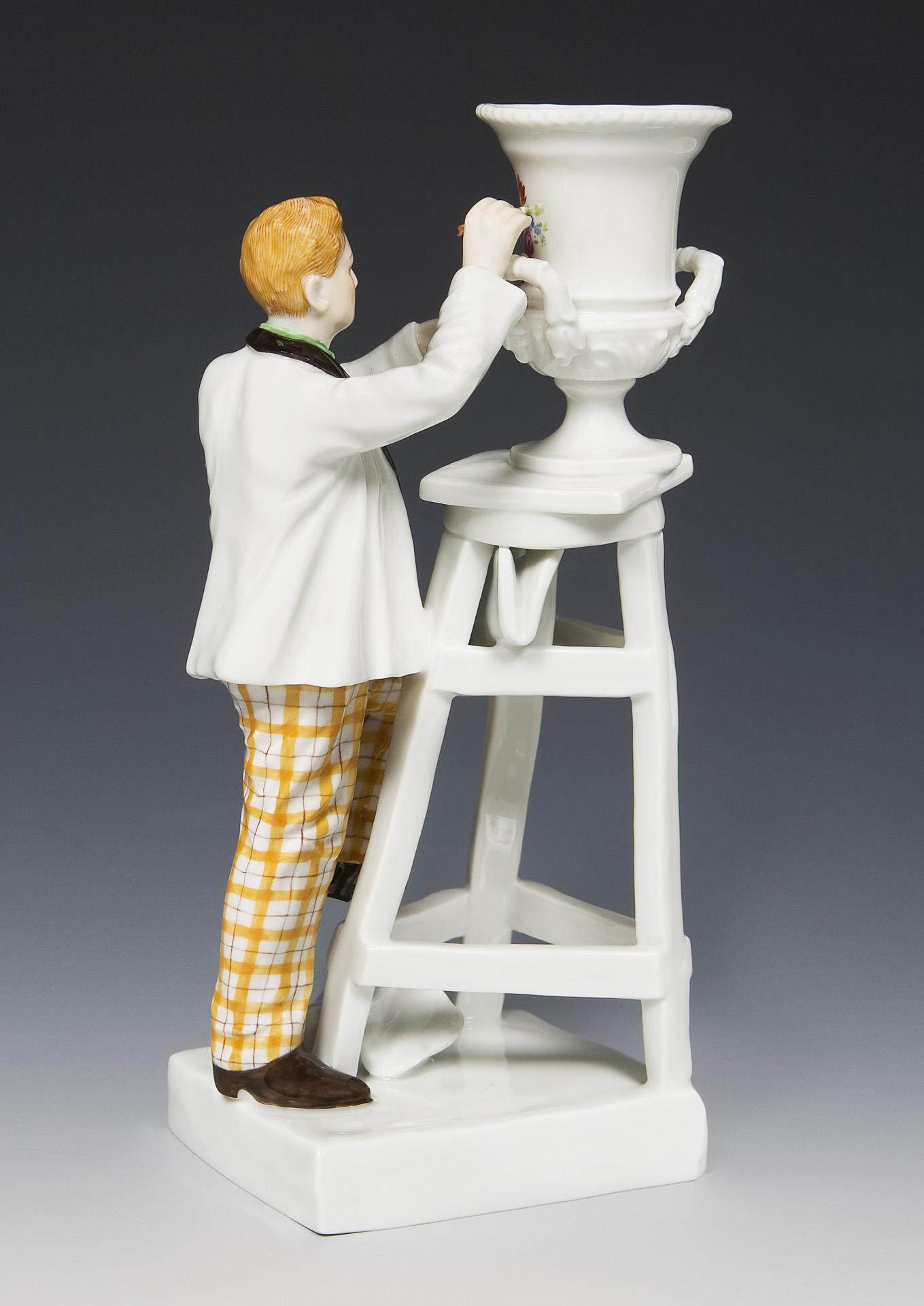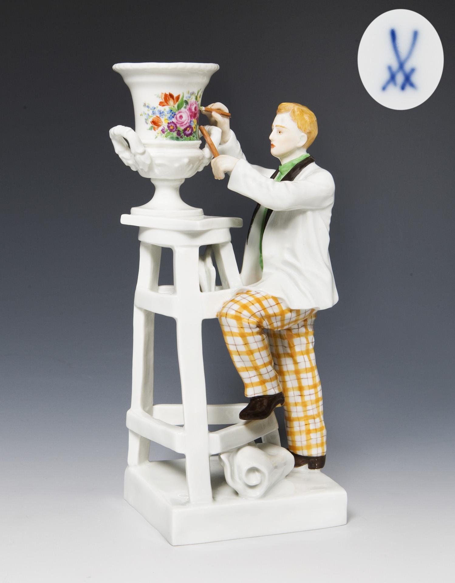 Aus einer Serie von 11 Figuren, farbig bemalt. Pressmarken, Malermarke, Schwertermarke. Pinsel, Stab restauriert, Pinselende bestoßen.
