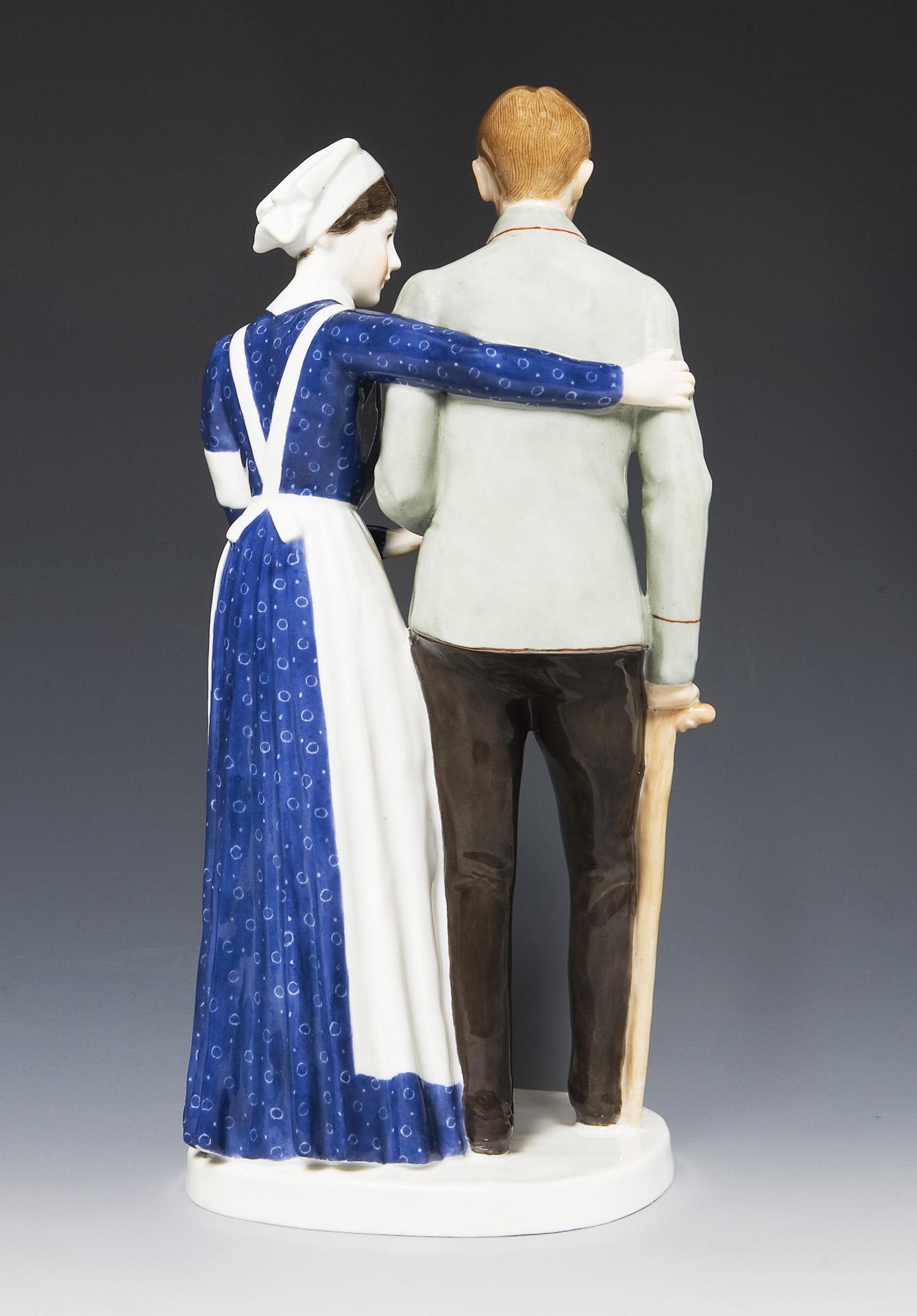 Seltene Jugendstil-Figurengruppe: Soldat mit Krankenschwester. Meissen.