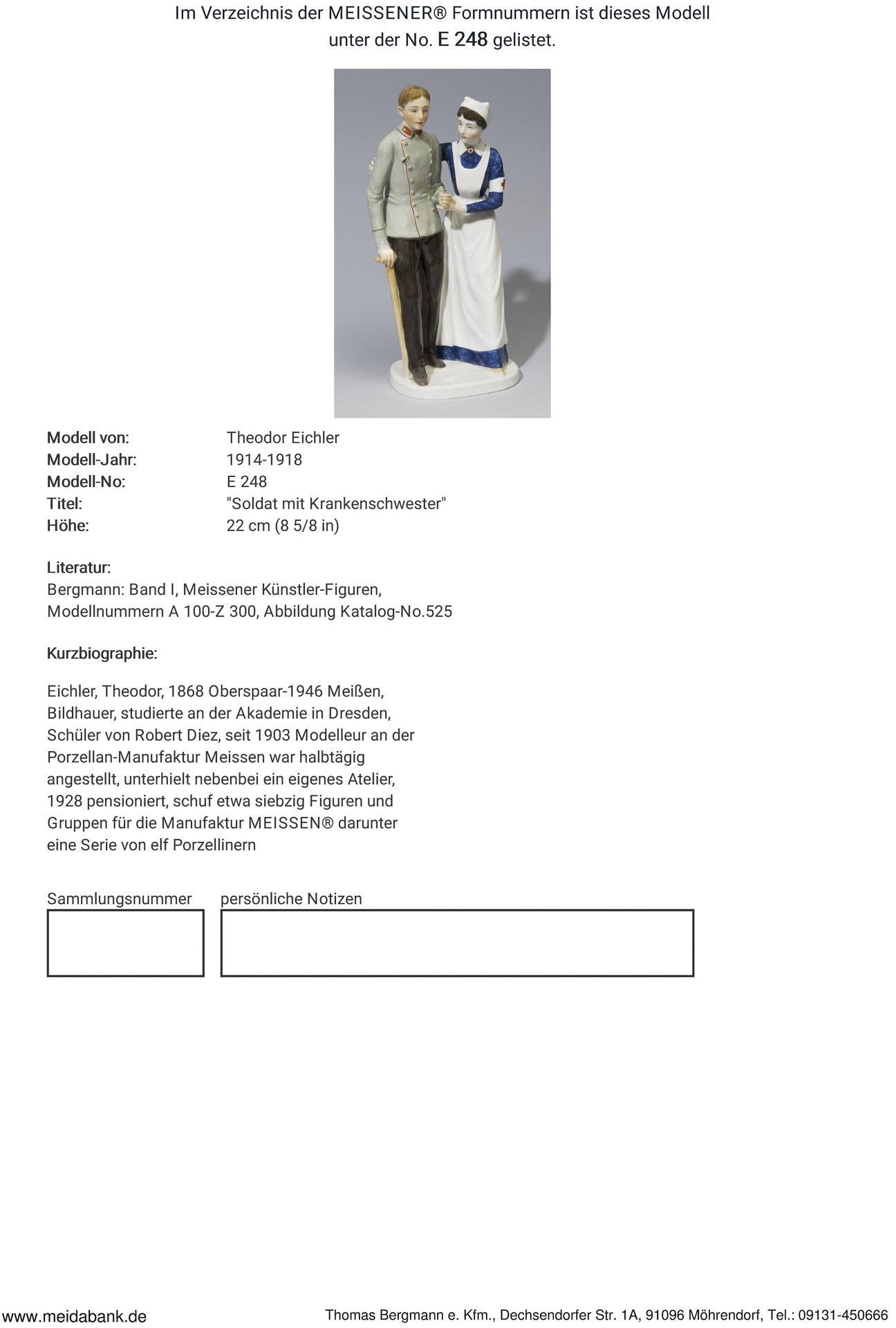 Ausformung 1914-1923. Modell-Jahr: 1914-1918, Modell-Nr. E 248. Modell von. EICHLER, Theodor(1868 Oberspaar - 1946 Meißen)