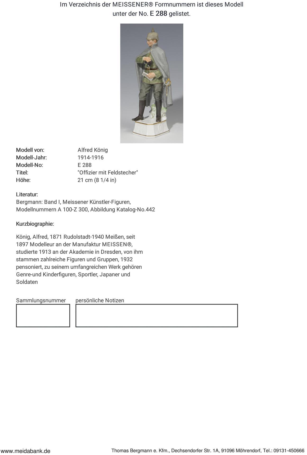 Ausformung 1914-1923. Modell-Jahr: 1914-1916, Modell-Nr. E 288. Modell von. KÖNIG, Alfred(1871 Rudolstadt - 1940 Meißen)