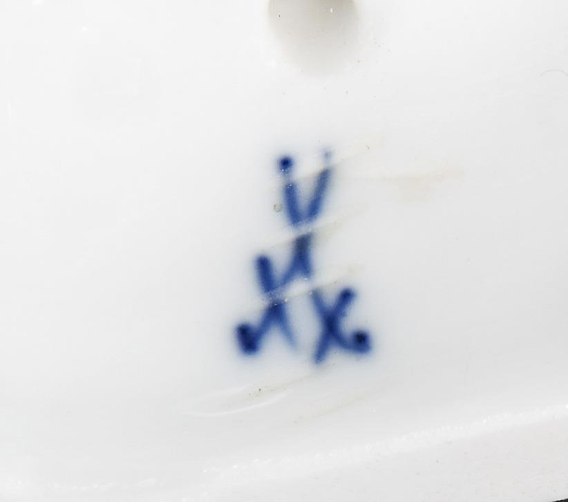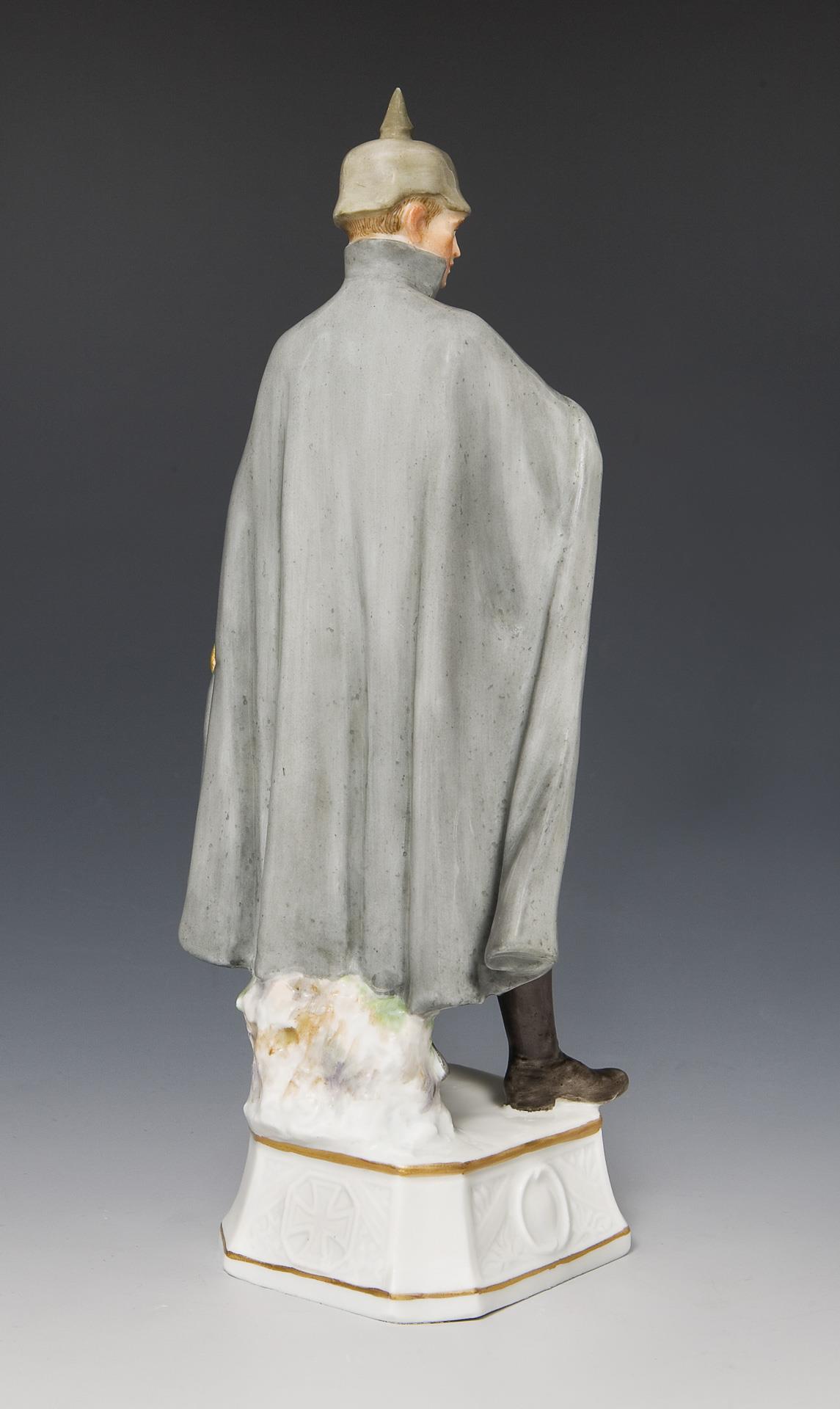 Farbig bemalt, reliefierte Sockelwandung mit dem Eisernen Kreuz. Ritzmarke, Schwertermarke fünfmal gestrichen (als Exemplar zum Verbleib in der Manufaktur gekennzeichnet). Pickel der Haube, Landkarte partiell restauriert.