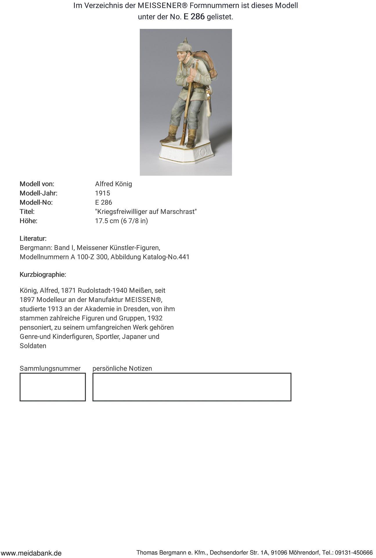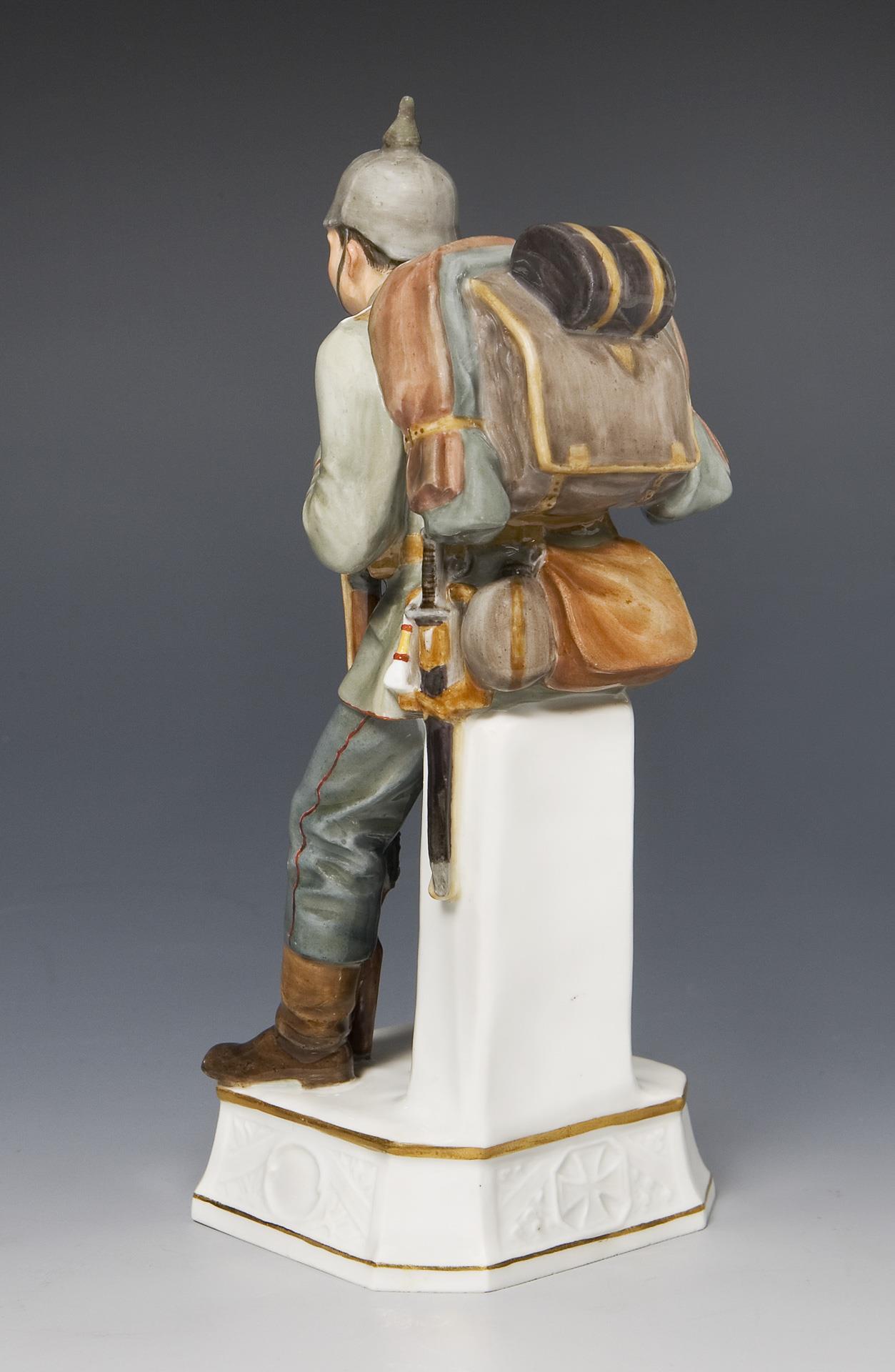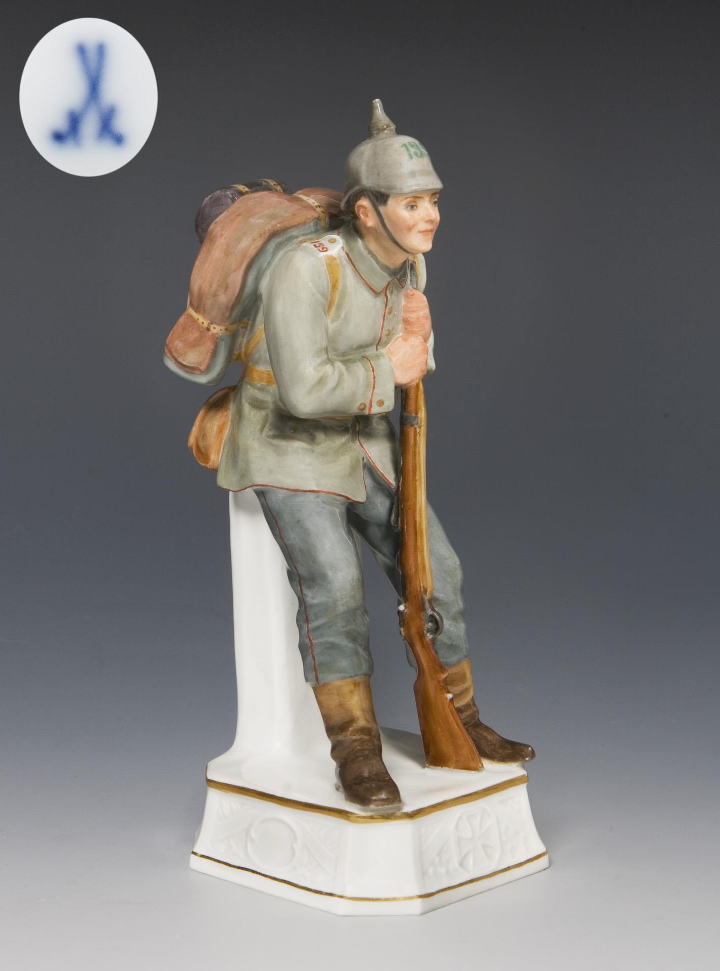 Seltene Jugendstil-Figur: Kriegsfreiwilliger auf Marschrast. Meissen.